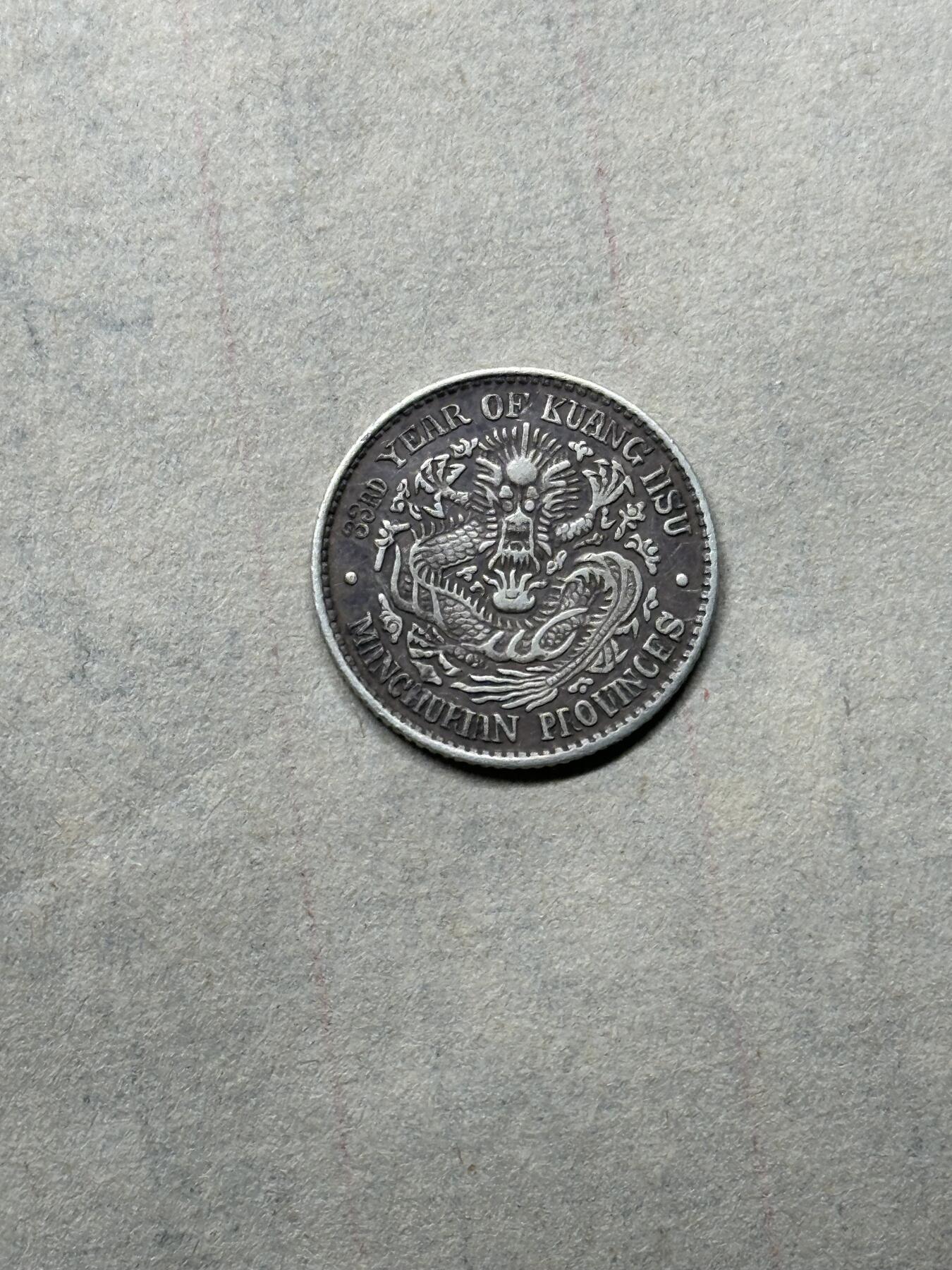 光绪33年1907年东三省光绪元宝库平七分二厘银币