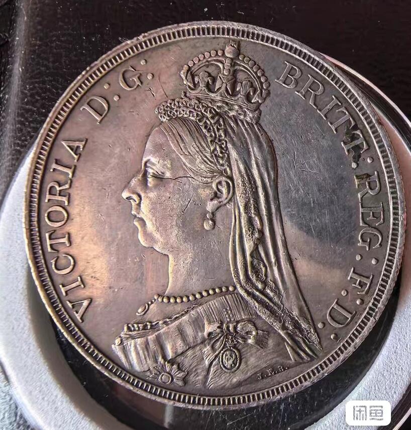 英国1887年维多利亚女王高冠马剑屠龙银币