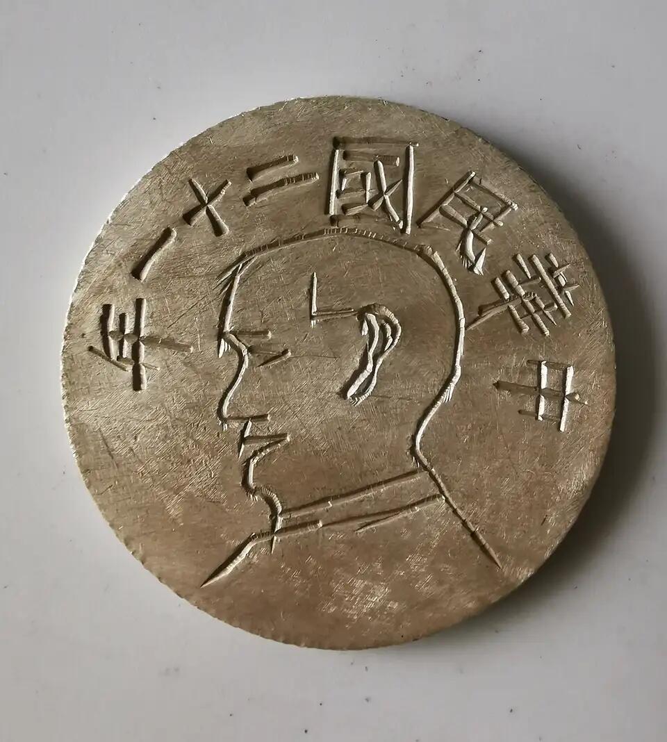 - 主体图案:孙中山先生侧面肖像,面部轮廓清晰,发丝、衣领等细节有雕刻纹理;