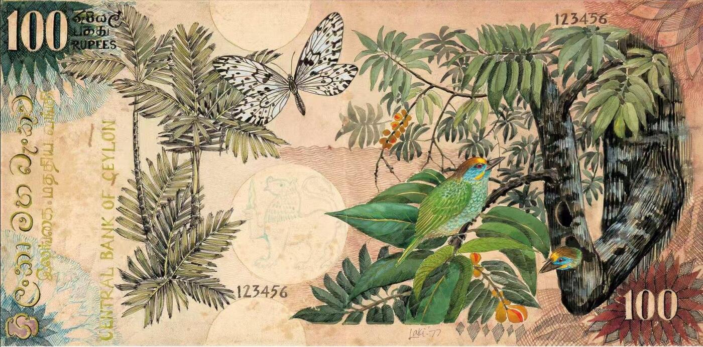 这是目前最喜欢的一套花鸟动物钞,1979年锡兰发行。全套共六张最近又收集到几张与实钞图案设计相关的图片一起分享给有共同爱好的钞友啦。