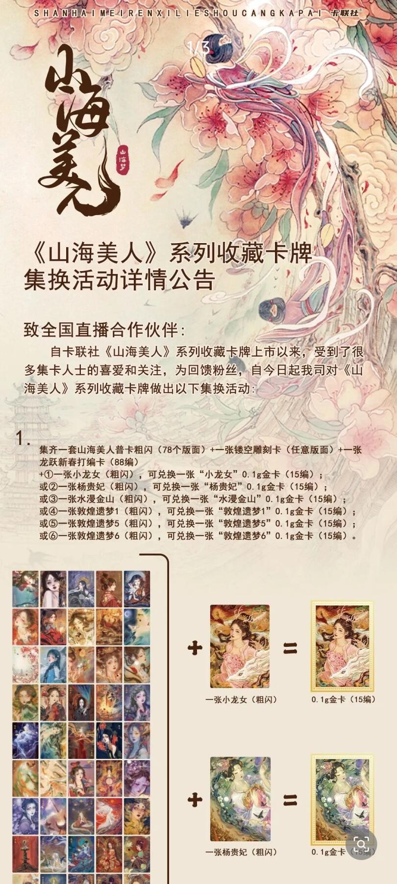 卡联社《山海美人》系列以古典神话《山海经》为灵感核心,解锁上古奇幻世界的女性群像。系列深挖鲛、傩等神秘意象,将非遗文化与神话叙事相融,既再现鲛人泣珠、千年守望的深情,亦呈现傩舞祈福、传承不灭的风骨。