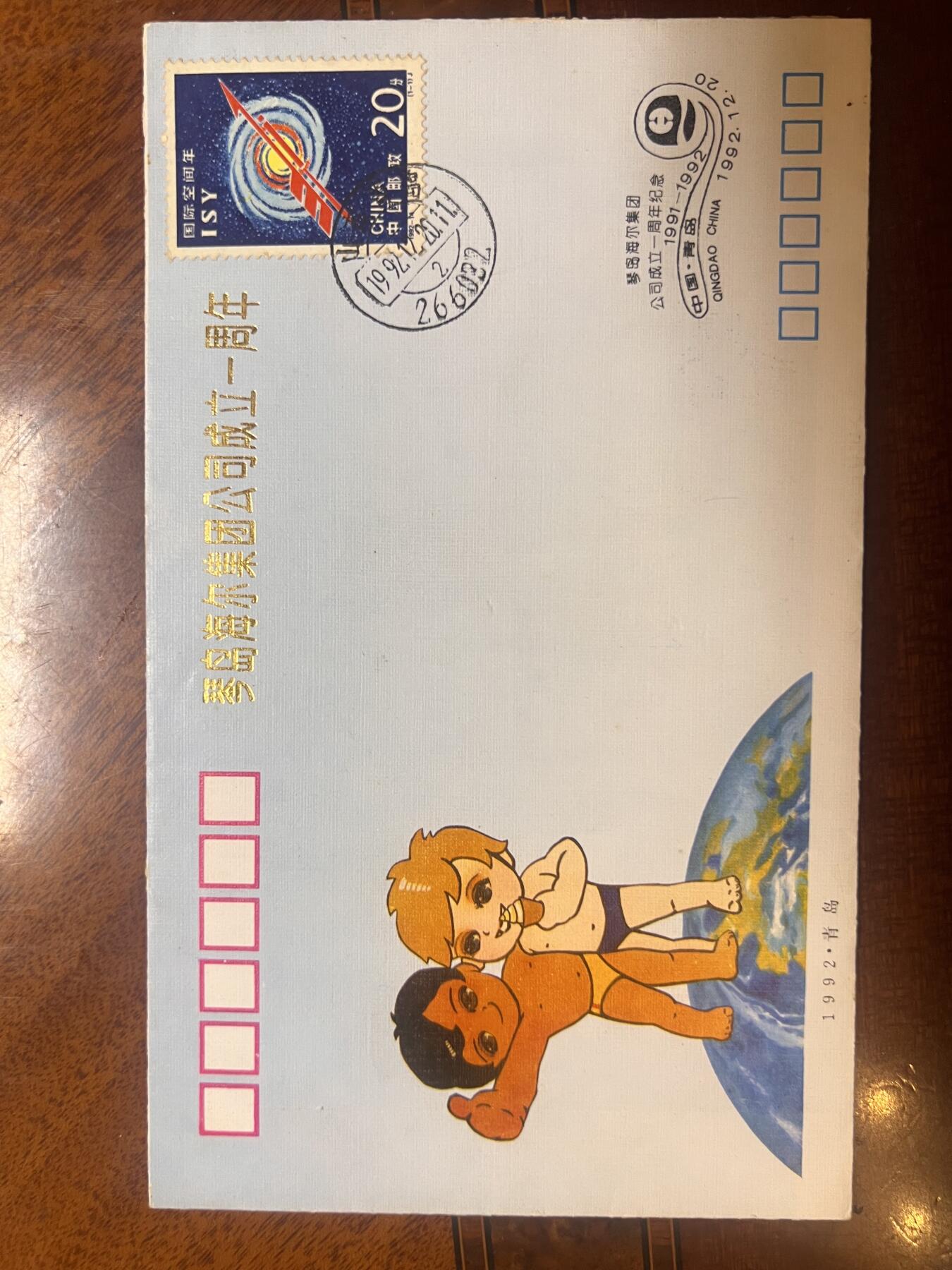 海尔公司一周年纪念信封 带张瑞敏签名