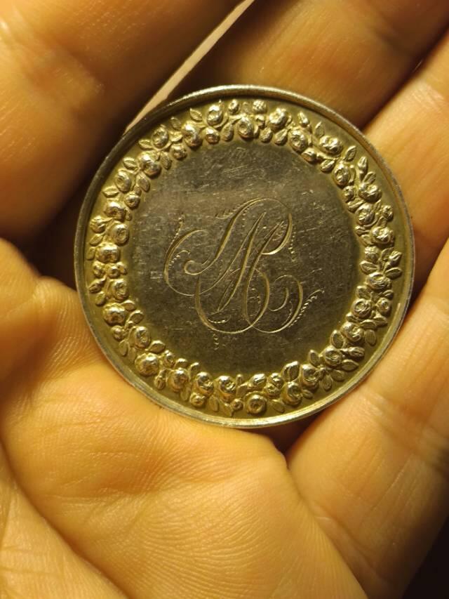 法国婚姻与爱情纪念银章 采用的是拿破仑养女斯蒂芬妮与巴登大公查理二世结婚纪念银章同款图案,21.7g,36.5mm,一枚手指、一枚蜜蜂,品相不错