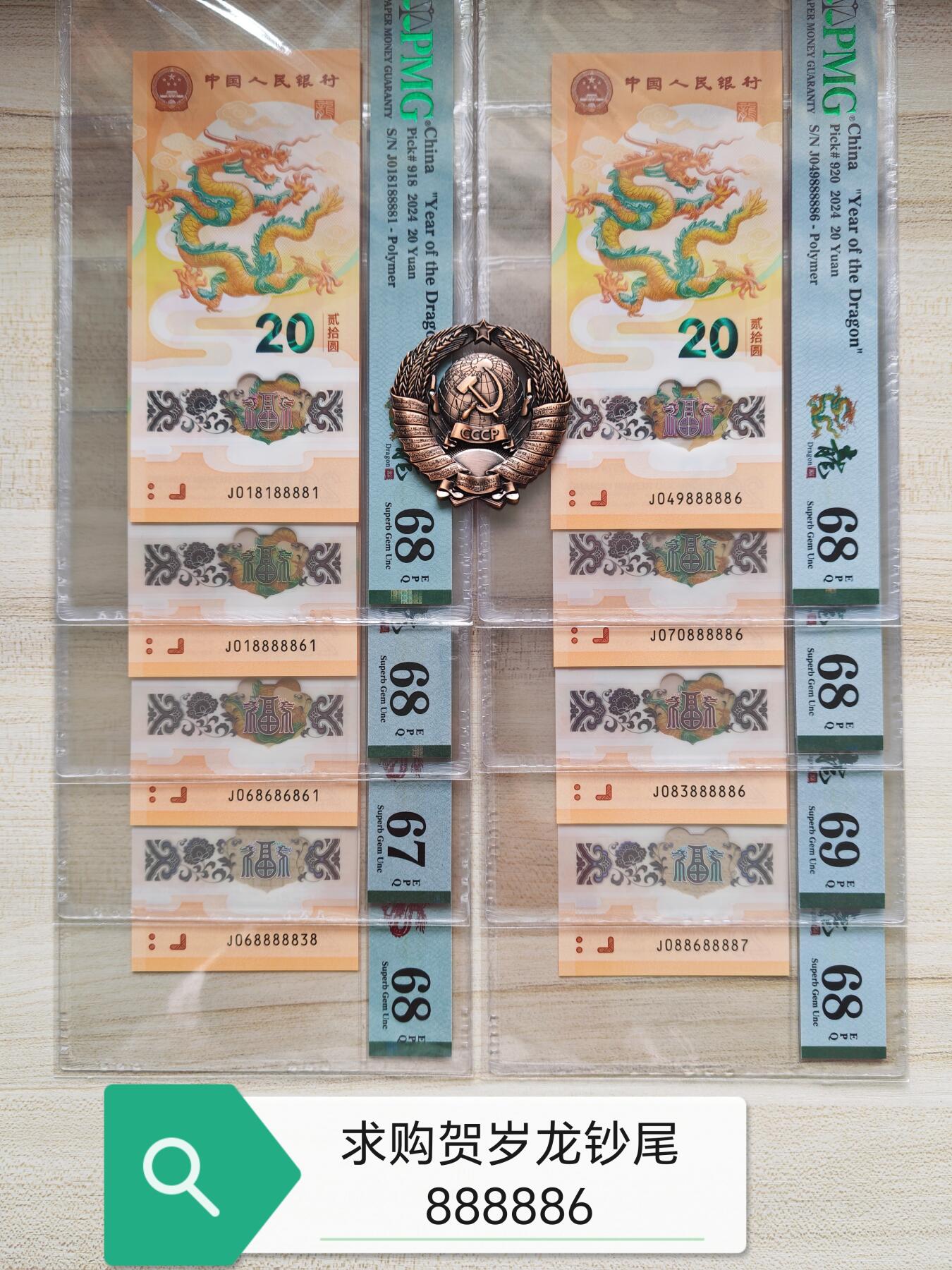 龙钞-奥运钞-建国钞-航天钞-70周年 pmg67,评级全套,尾8。 所有尾3同:668(路路发)无347,不单出