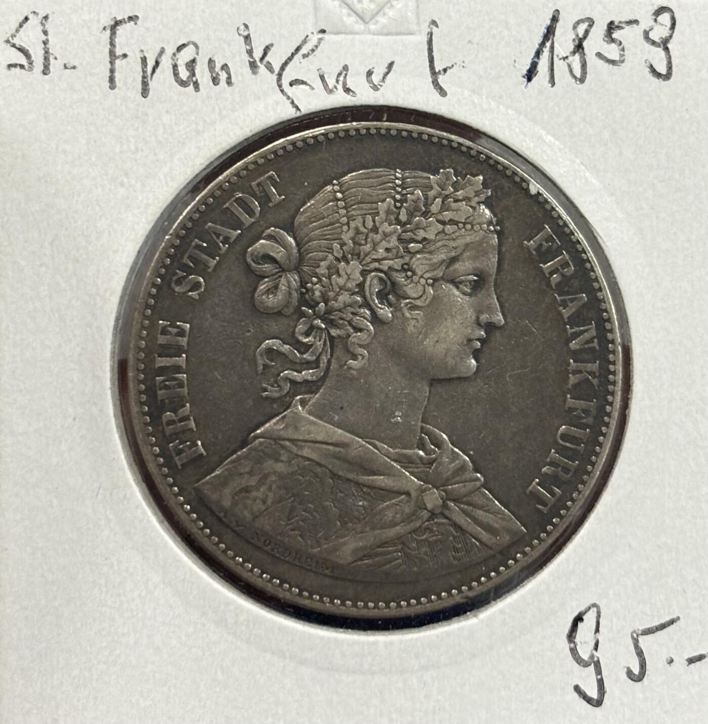 德国1859年法兰克福少女1泰勒银币