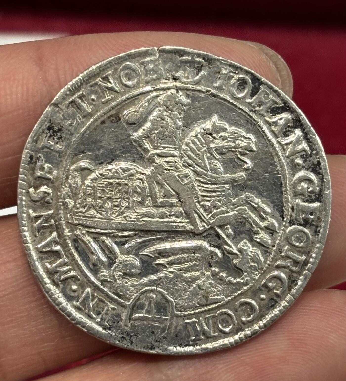 神罗邦国曼斯菲尔德-艾森纳赫 的银币 看着对 图不太清楚 还有一面拍反了 应该是三分之一面值的 钱币所处时代国王为 萨克森选帝侯约翰·格奥尔格三世 品相很一般 币边不完整 有磕碰或类似戳记 12点处似乎有老裂 两三千估计得有吧或更多 价格不是很了解