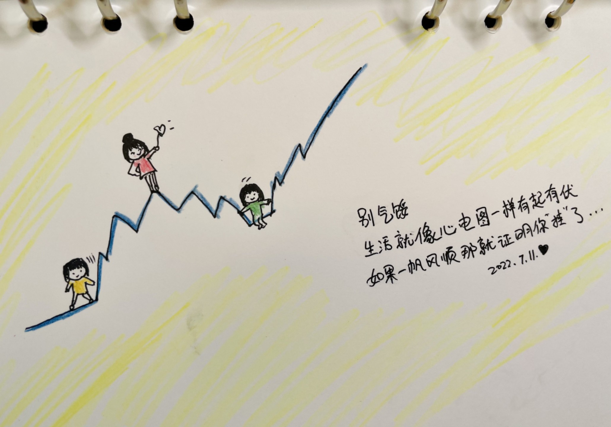 别气馁 生活就像心电图一样有起有伏 如果一帆风顺那就证明你“挂”了…