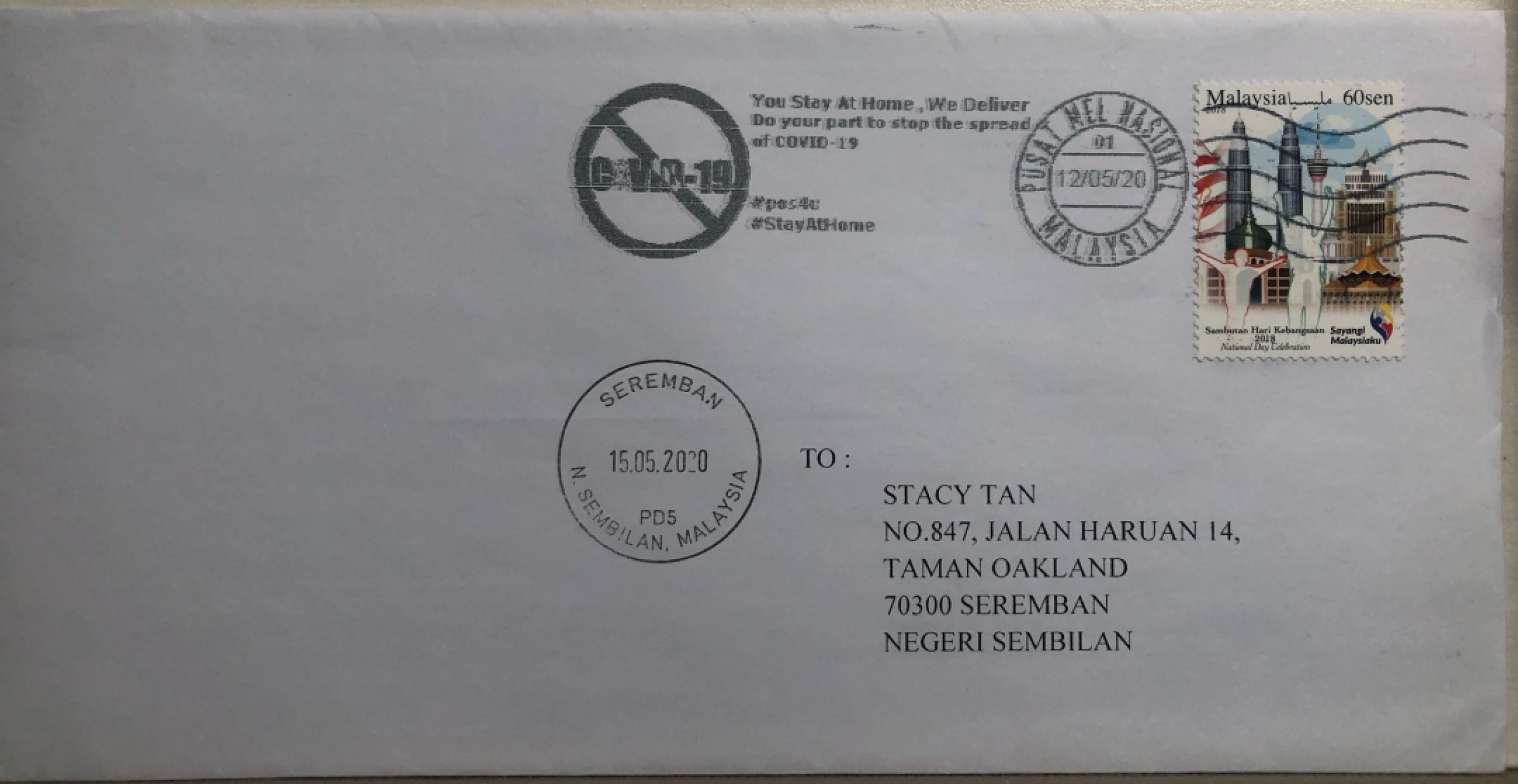 马来西亚抗疫邮资机戳首日实寄大马国内