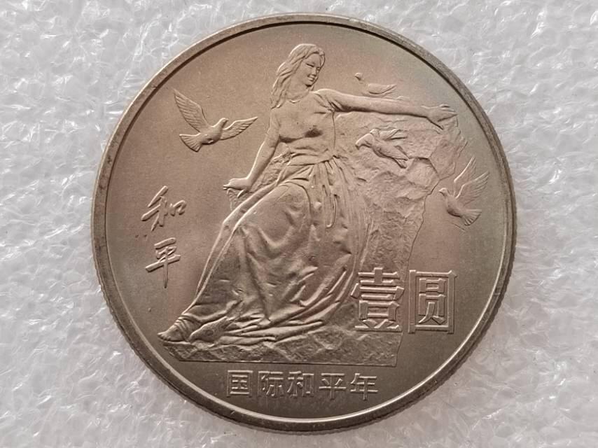 1986年国际和平年纪念币是央行为响应联合国将1986年定为“国际和平年”的倡议而发行的流通纪念币,于1986年9月20日正式发行。 该纪念币的规格和设计: 正面图案包括中华人民共和国国徽、国名和1986年年号;背面图案以雕塑“和平”为主题,展现少女召唤和平鸽的场景,并刻有“和平”字样及“国际和平年”主题文字,设计融合了刚柔对比的美学元素。