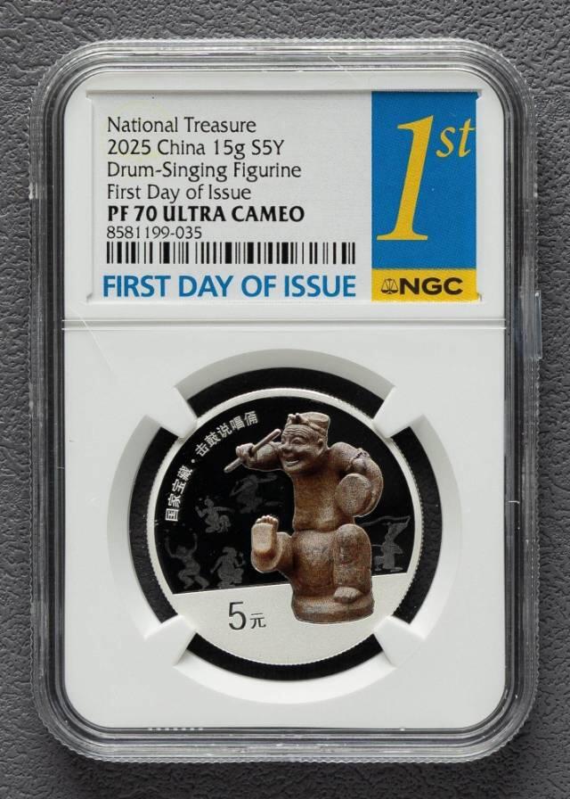 2025年击鼓说唱银币,是央行2025年6月14日发行的“国家宝藏(统一气象)”金银纪念币中的15克圆形银质纪念币,精制99.9%银,面额5元,发行量仅10000枚,属汉代文物主题的稀缺贵金属币 。