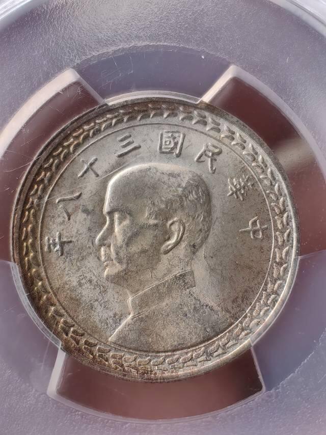 “地瓜5角银币”是民国三十八年(1949年)台湾省伍角银币,因背面台湾岛轮廓像地瓜得名,是旧台币首套银辅币,台北造币厂铸造,1949.12.1发行,1981.12.8停用。 核心规格 - 材质:银72%+铜28%,直径24mm,重5g,边齿为八字纹 - 图案:正面孙中山左侧像+“中华民国三十八年”;背面台湾省地图+“台湾省”+左右“伍角”,海浪纹外围