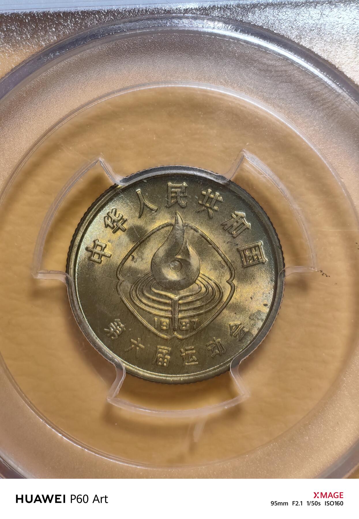 - 背面细节:背面图案相同,中央为抽象化熊熊燃烧的全运会圣火火炬,上方弧刻“中华人民共和国第六届运动会”字样,底部标注年份“1987”。
