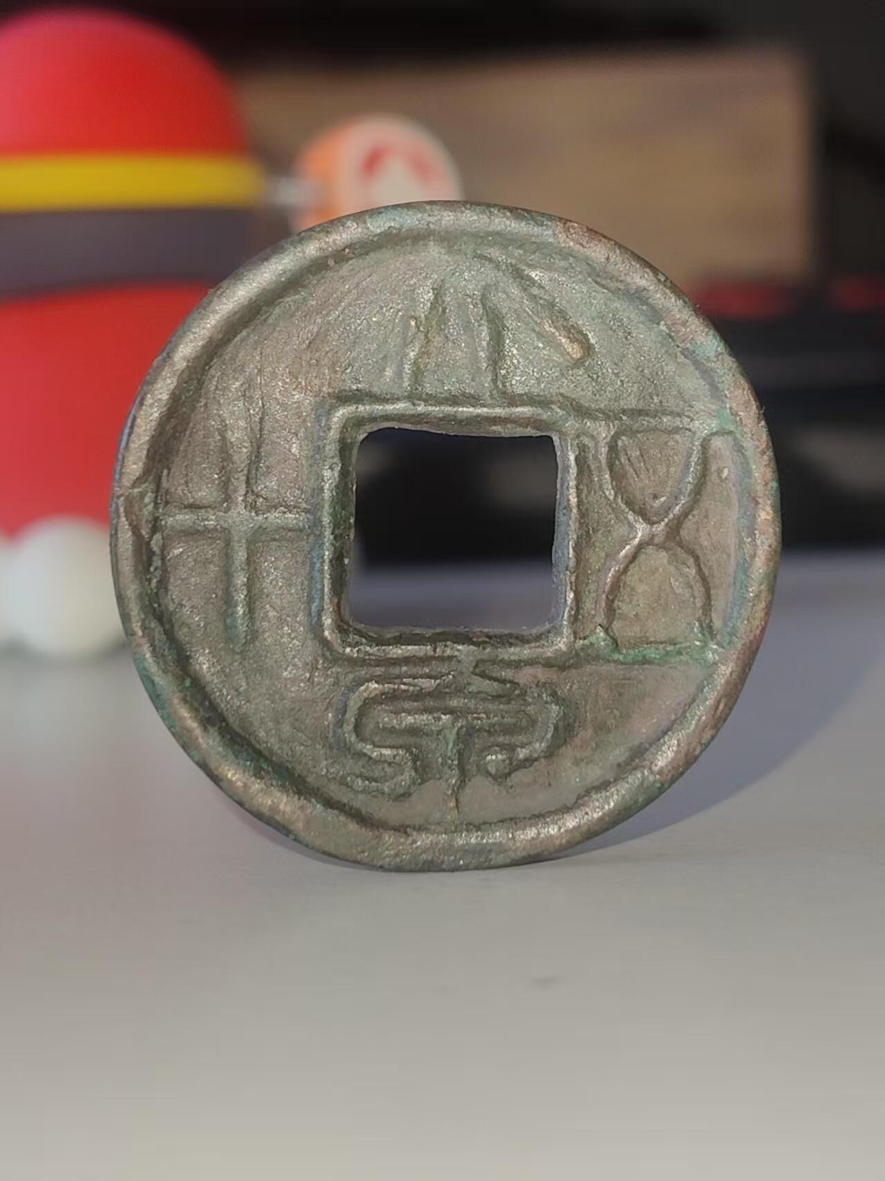 大泉五十铜钱,是新朝王莽时期发行的核心货币之一。 发行背景:始建国元年(公元9年)王莽篡汉后发行,是他推行货币改革的产物,也是流通时间最长、存世量最大的王莽钱币。 “大泉五十”意为“一枚大钱价值五十枚五铢钱”,但它的实际重量远不足五铢钱的50倍,是典型的虚值大钱,目的是为了掠夺民间财富。 材质与规格:主要为青铜铸造,直径约26–30毫米,早期厚重版重量可达10克以上,后期减重版仅3–4克。