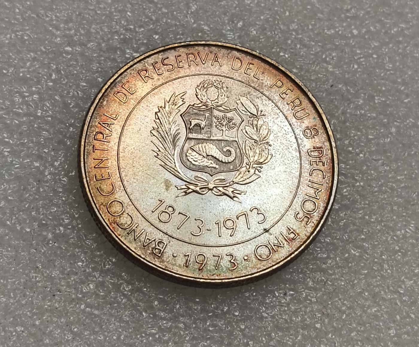 - 背面(国徽面):为秘鲁国徽,下方标注年份“1873-1973”,边缘文字是秘鲁中央银行名称“BANCO CENTRAL DE RESERVA DEL PERU”。