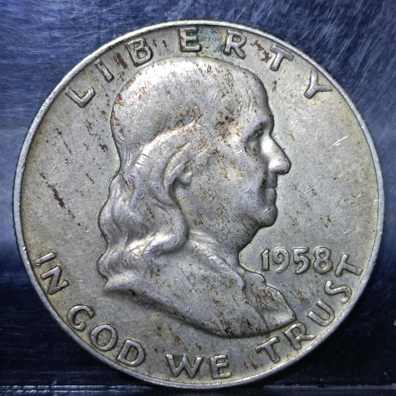 美国1958年发行的富兰克林半美元银币,属于美国20世纪中期的经典流通货币。