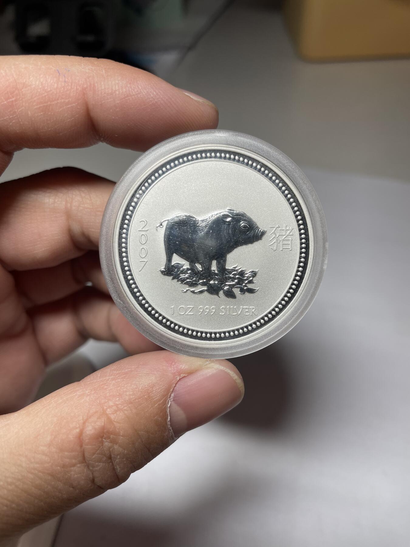 这枚澳大利亚2007年猪年1盎司精制银币,是珀斯铸币局生肖系列中的经典之作。999纯银的镜面底板上,憨态可掬的野猪浮雕栩栩如生,搭配汉字“猪”与年份“2007”,完美融合了东方生肖文化与西方造币工艺。正面伊丽莎白二世女王的肖像采用高浮雕黑底工艺,与背面的哑光银质图案形成鲜明对比,原封的保护壳更留存了出厂时的精致光泽。它不仅是贵金属投资的稳妥选择,也是全球华人藏家珍视的文化符号,一枚在手,既是对农历猪年的美好纪念,也是东西文化交融的独特见证。