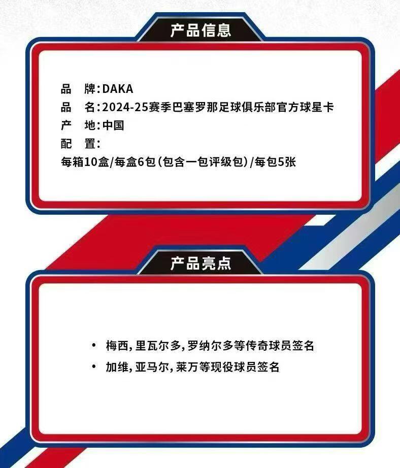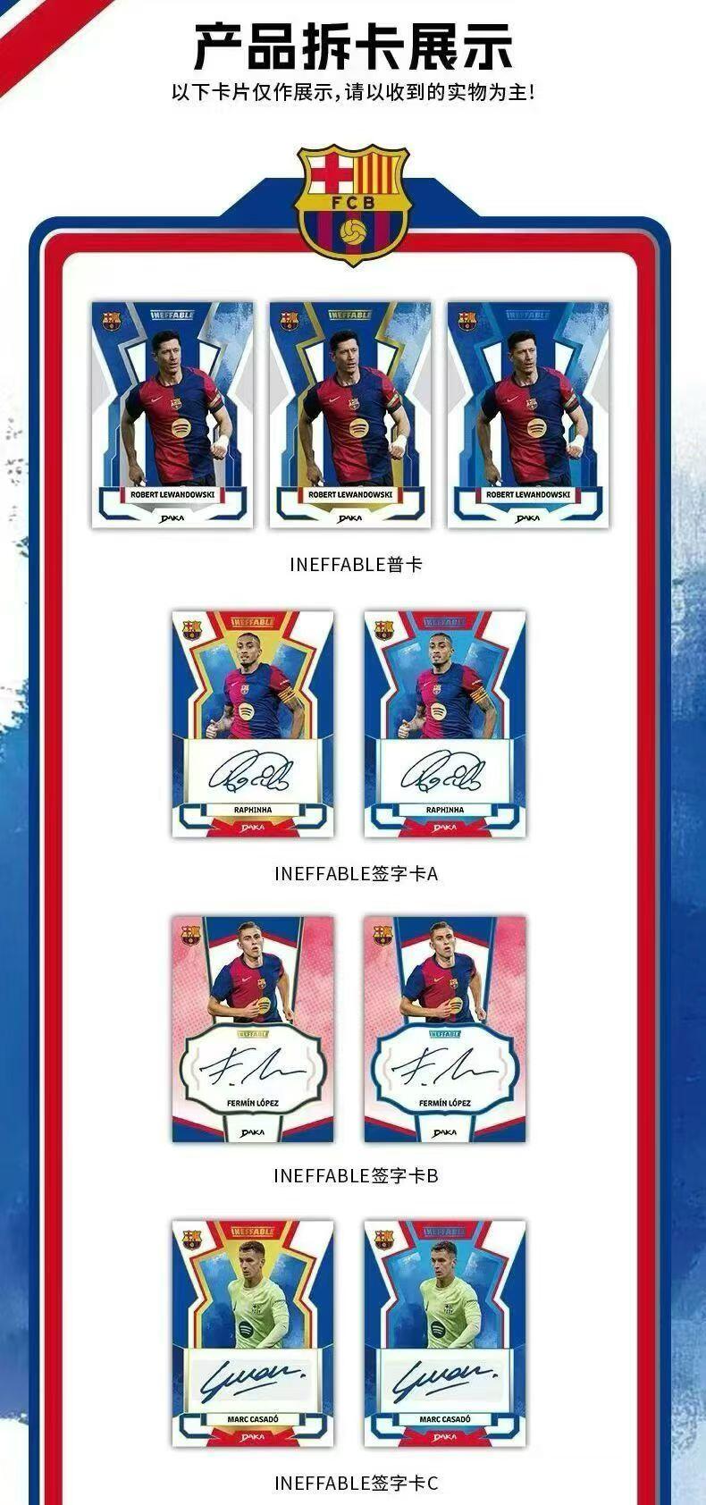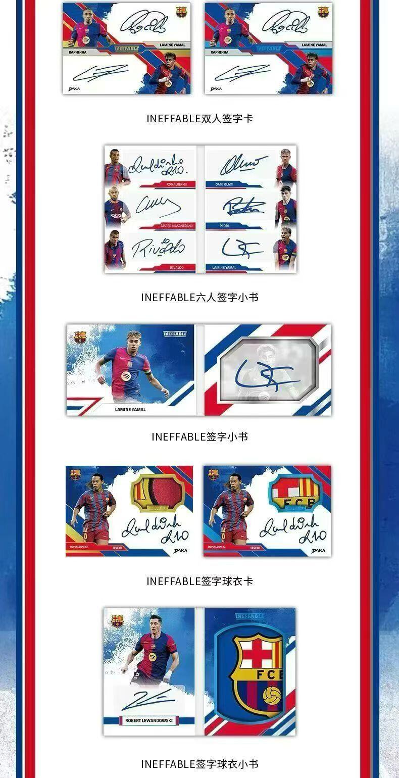 🔥最新24-25巴塞罗那俱乐部 DAKA ONE & TWO系列❤️ 每盒5包/每包5张卡➕1张评级卡或小书卡 💥梅西,亚马尔,罗纳尔多等众多巴萨名将签字!爆金、小书Hit搏点上限拉满! 💰售价1699元/盒