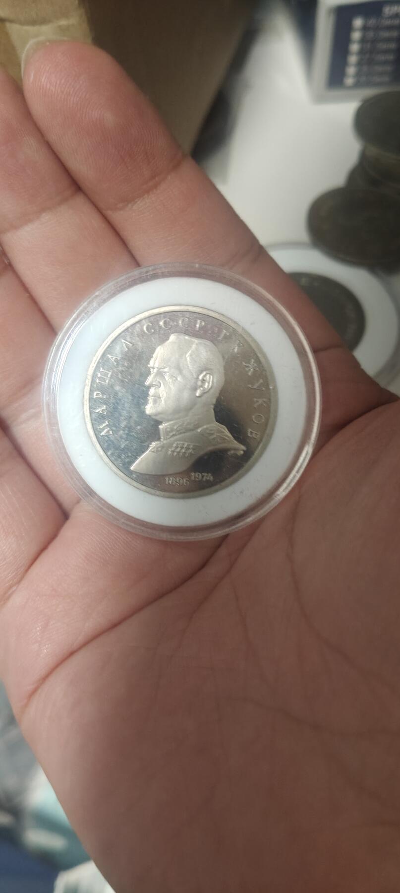 这是一枚苏联1990年发行的1卢布纪念币,纪念的是苏联元帅格奥尔吉·康斯坦丁诺维奇·朱可夫(Георгий Константинович Жуков)诞辰94周年。