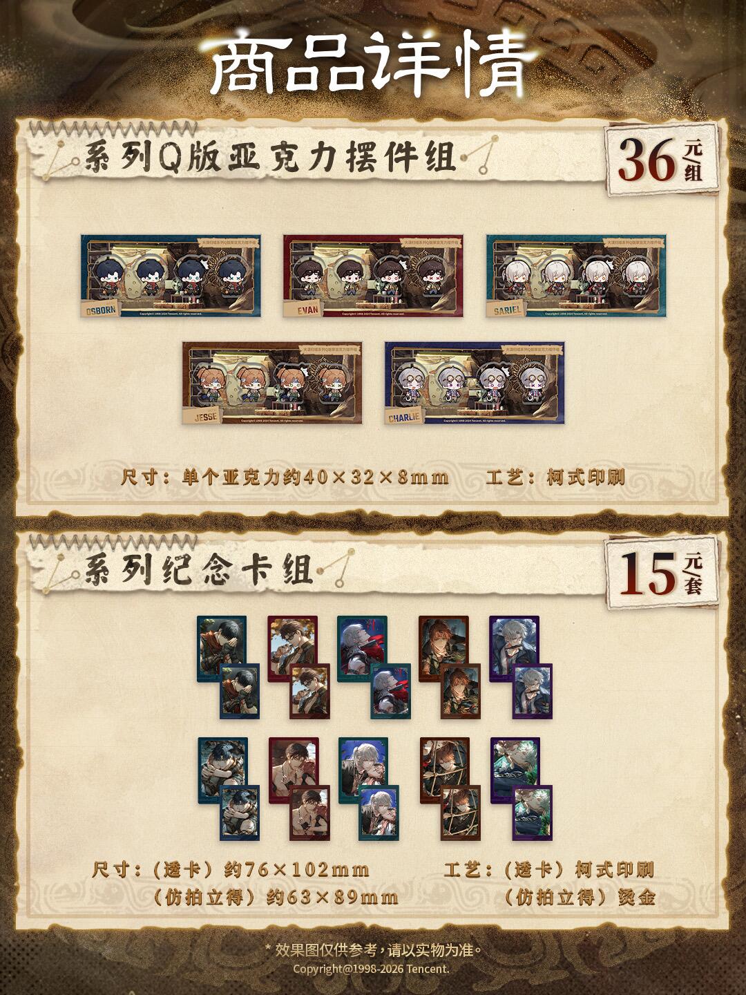 大漠归墟系列长方形徽章、色纸、收藏卡组、纪念卡组、亚克力色纸、Q版厚亚克力摆件组、护身符;
