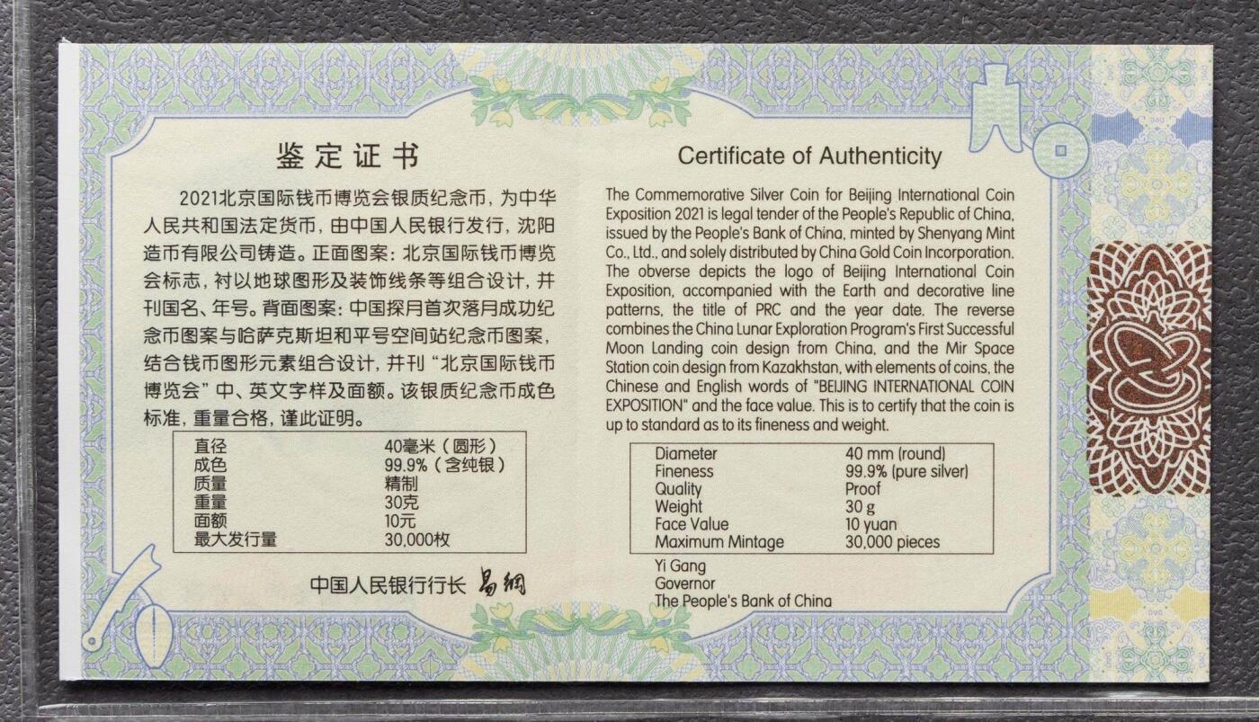 2021北京国际钱币博览会银质纪念币(央行法定货币)的完整权威信息,2021年10月28日发行,线上钱博会专属 。