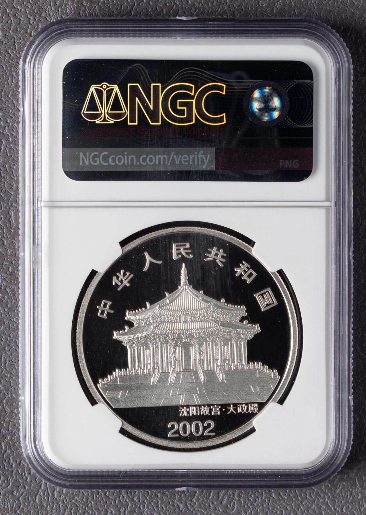 2002壬午马年1盎司彩色银币(法定纪念币)的核心信息: 1. 发行方:中国人民银行,2001年10月26日公告发行;铸造:瑞士HUGUENIN+KRAMER造币厂;质量:精制,成色99.9%;面额10元;重量1盎司(31.1035克);直径40mm;发行量100000枚。 2. 图案:正面为沈阳故宫大政殿,刊国名、2002年号;背面是彩色骏马图并刊面额。