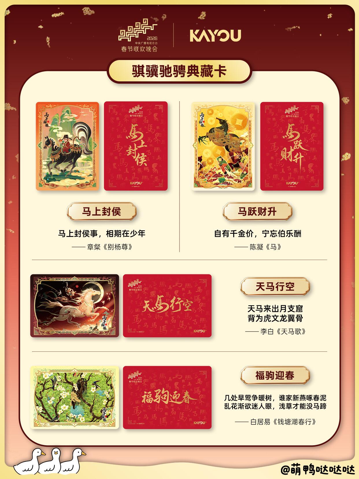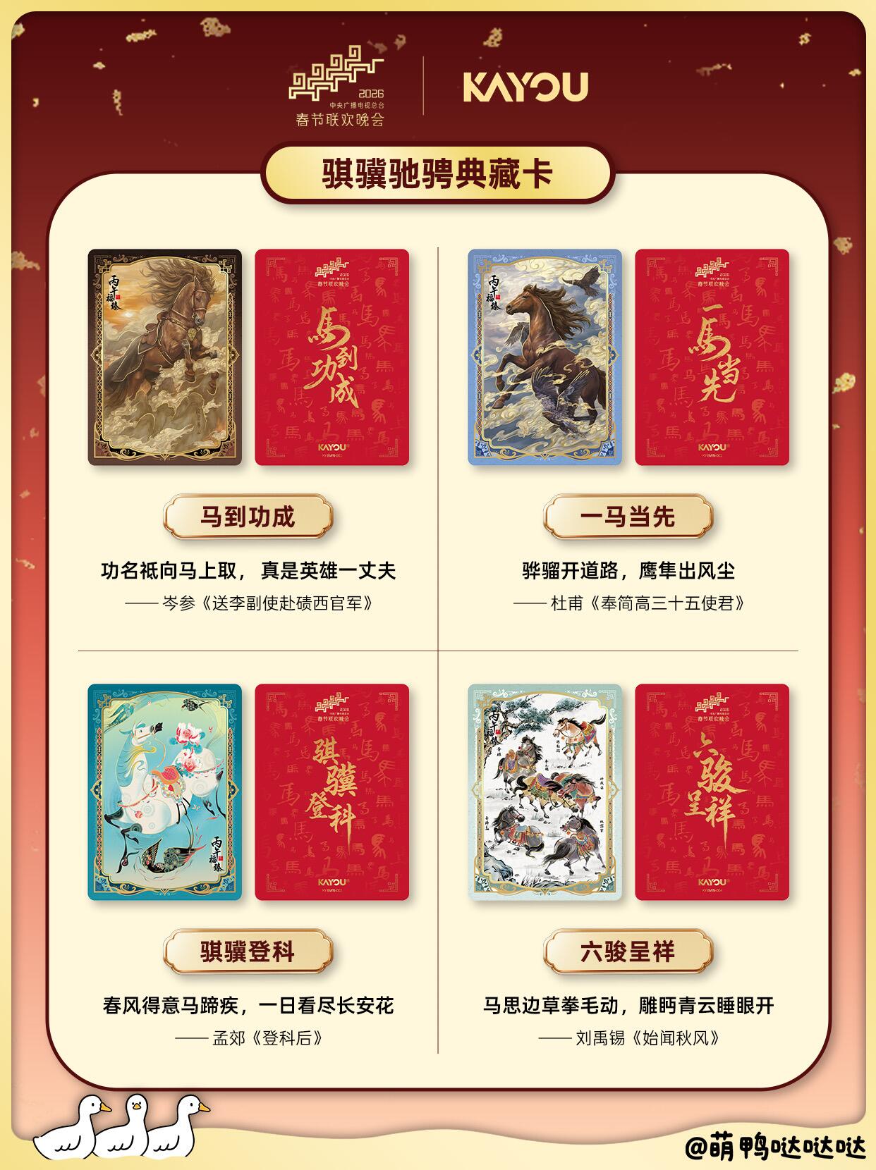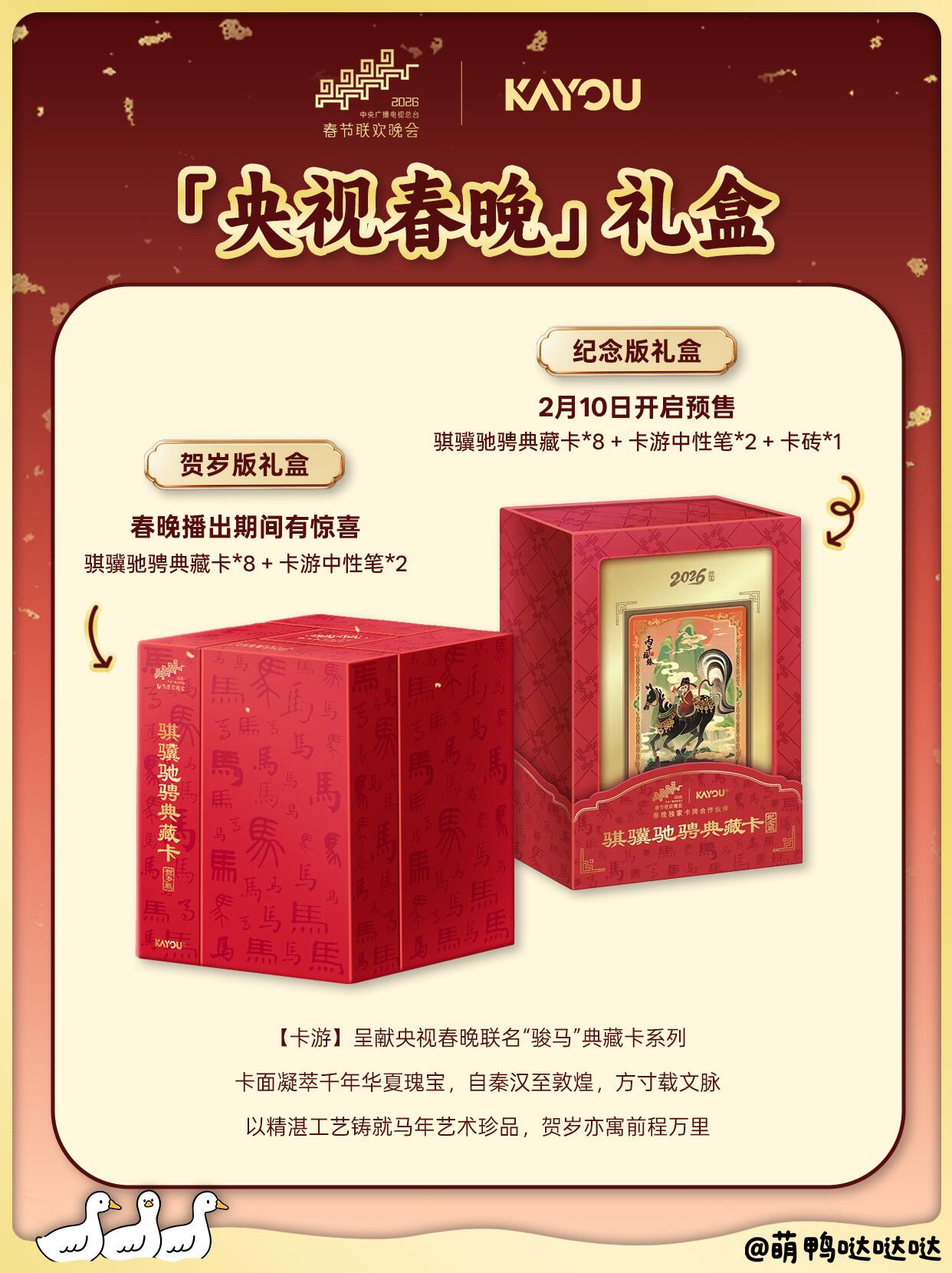 典藏骐骥,好势马上来! 姐妹们看过来~2026总台春晚和卡游合作的典藏卡礼盒来啦!作为春晚du家卡牌合作,这次以“骐骥”为韵,文化含金量直接拉满,寓意新年一路向前🐎✨
