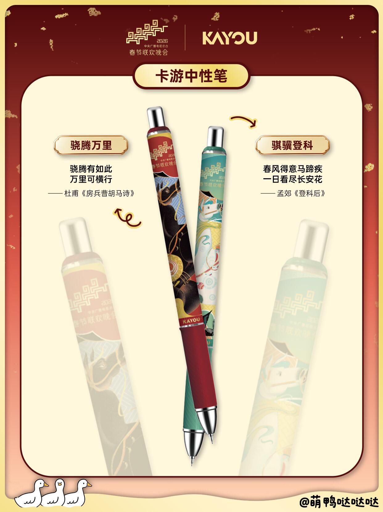 恰逢丙午马年,寓意“前程万里”,每张卡更配有名句“春风得意马蹄疾”等,喜庆又风雅。联名笔身印有专属标识,配卡砖陈设,日常摆放也韵味十足。