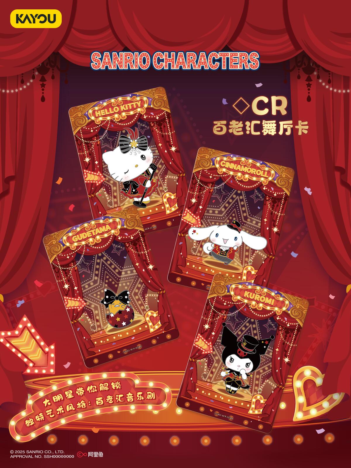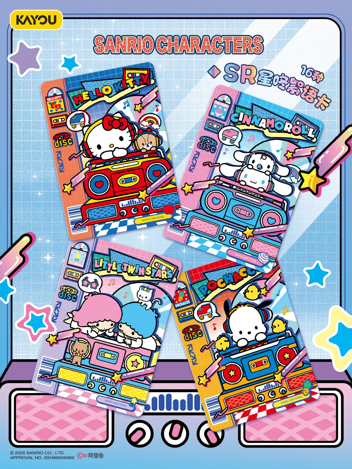 闪耀!三丽鸥家族大明星舞台时刻 一场风格百变的音乐绮梦正在上演 百老汇音乐剧、科幻美学艺术、潮流霓虹风格、City Pop流行乐等,跟随三丽鸥家族大明星的脚步共同感受多元文化魅力 本弹星座限编卡收录狮子座,评论区@出你身边的狮子座小伙伴,一起收集专属生日编号(7月23日~8月22日)吧! 三丽鸥家族 萌梦收藏卡 趣影包 星咚絮语 暖心发售