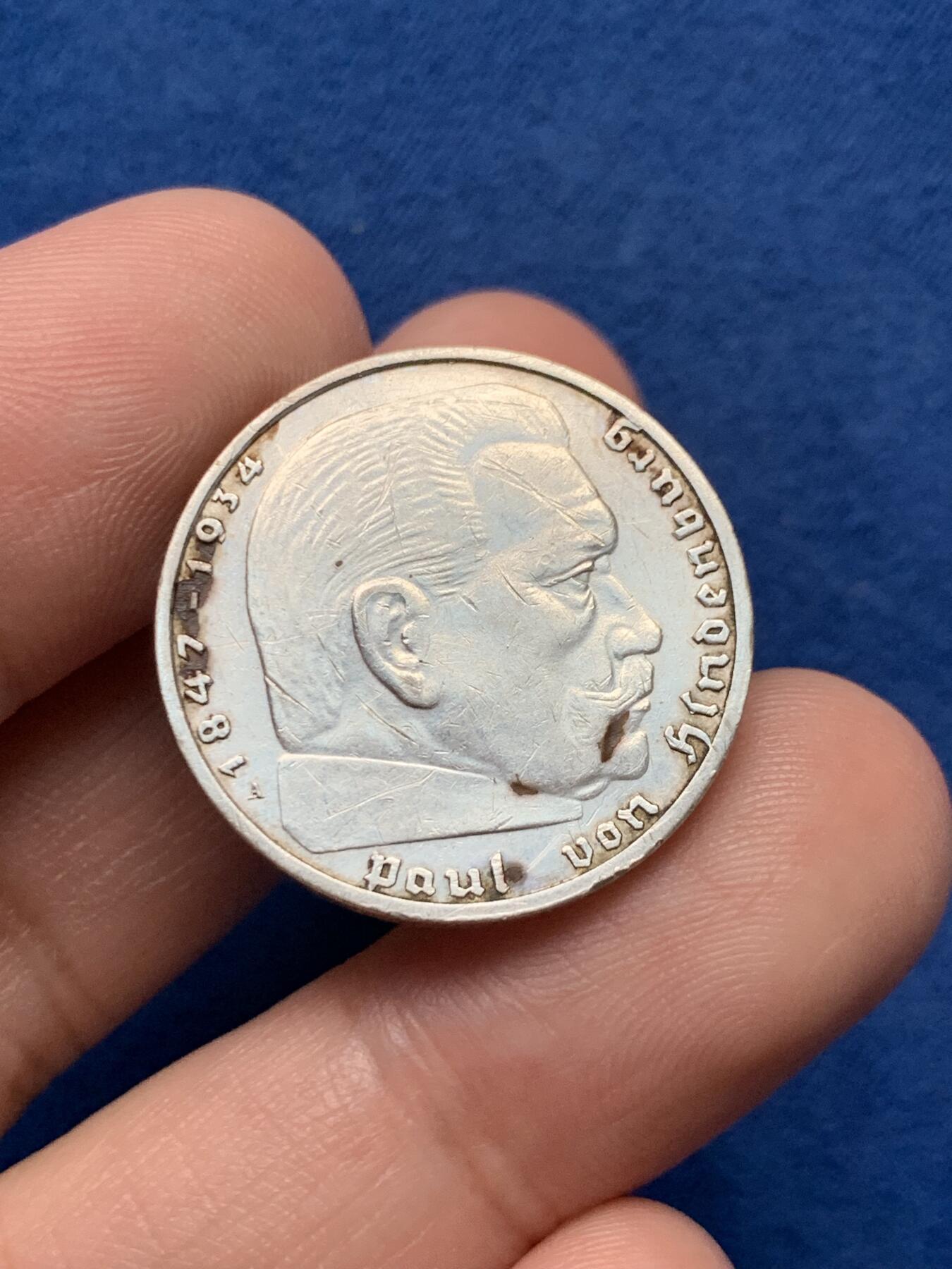 - 这枚币发行于二战爆发的1939年,是纳粹德国为了纪念兴登堡而发行的,同时也利用其威望来巩固政权合法性。