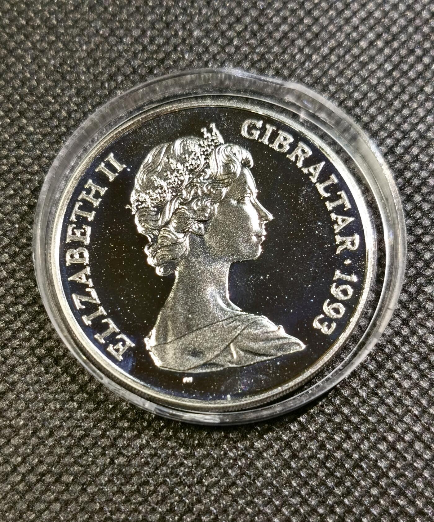 - 文字:环绕边缘的“ELIZABETH II GIBRALTAR • 1993”,标明君主、发行地与年份。
