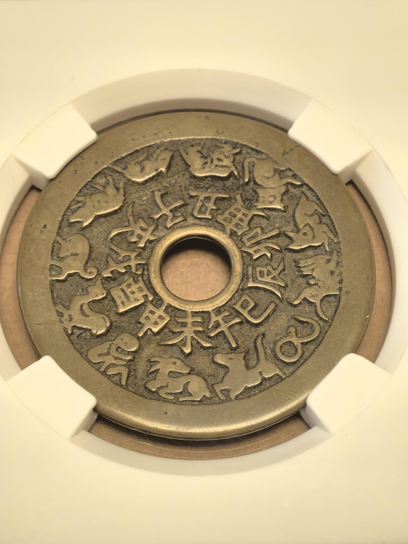 此品铜质温润,钱文纤细深峻,生肖图案细节生动清晰,应为苏炉铸造,正面保存良好,背面文字局部磨损,整体自然,是一枚不错的花钱。估价根据品相结合市场估算,仅供参考!由于是家中老人留下来的,对您来说具有特殊意义,建议妥善保管。