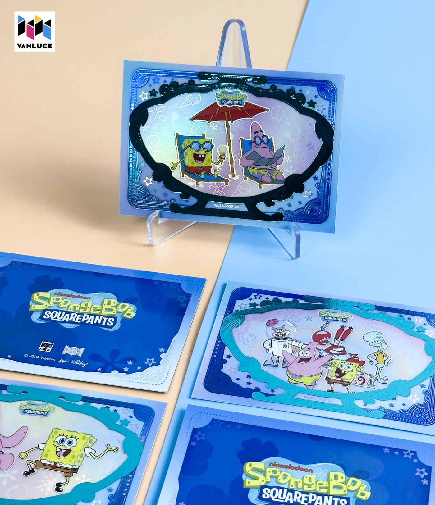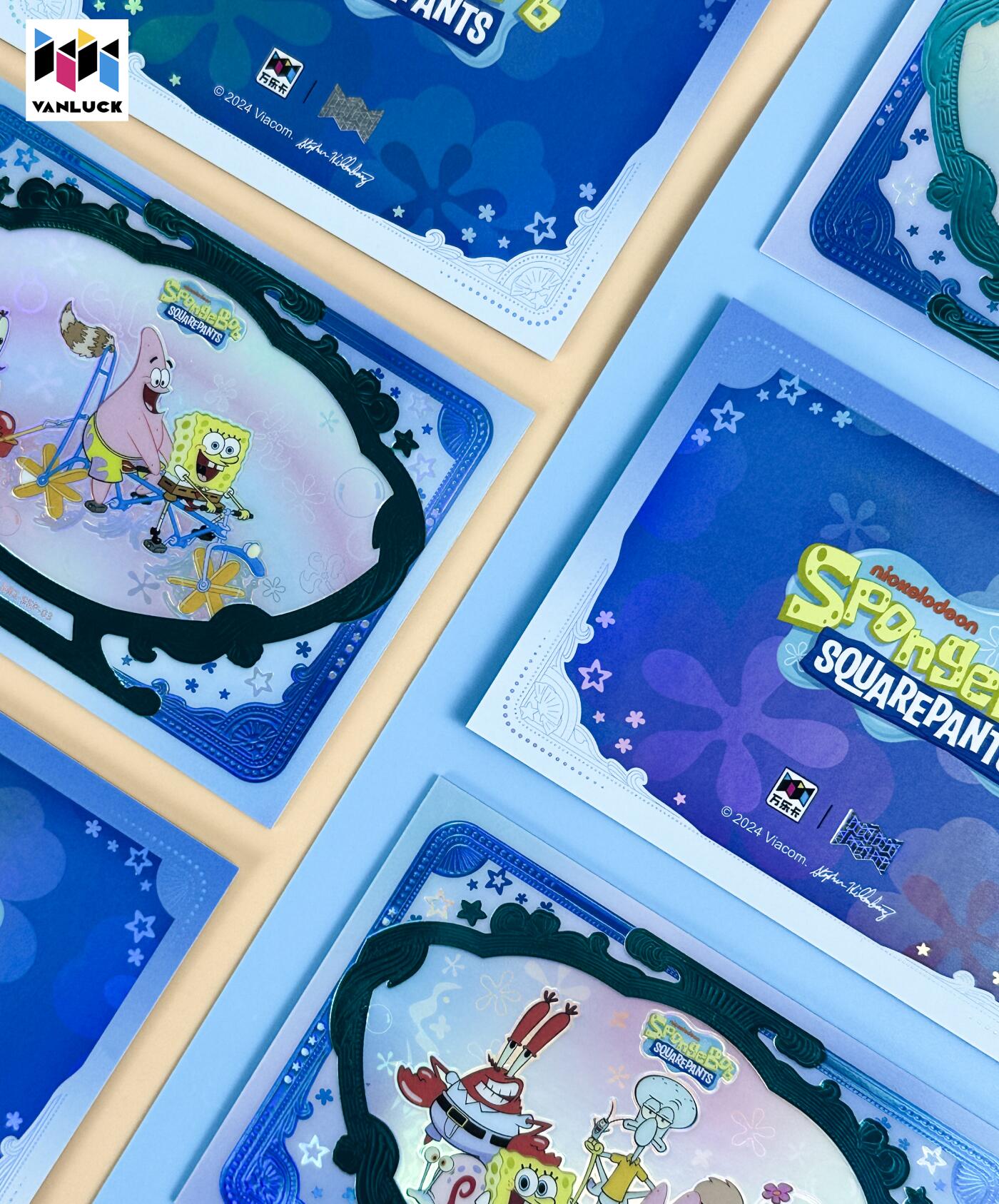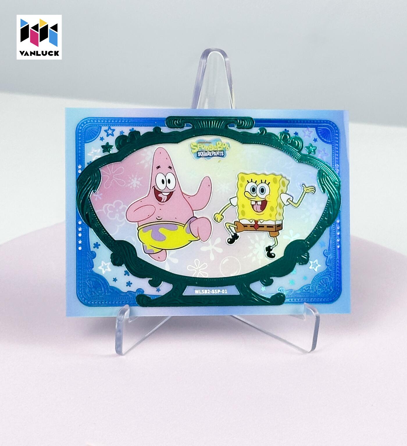 万乐丨海绵宝宝镜臻系列梦幻深海限编卡 海绵宝宝·25周年「镜臻系列-海底派对」系列 “SSP 梦幻深海限编卡” 共8款 限编89 出率: 1张/2箱 幻彩镭射 + 烫金浮雕,质感拉满 复古相框设计,还原比奇堡名场面 在比奇堡的海底世界,快乐从来都很简单,万乐 × 海绵宝宝典藏卡,把那些治愈瞬间,都藏进流光里