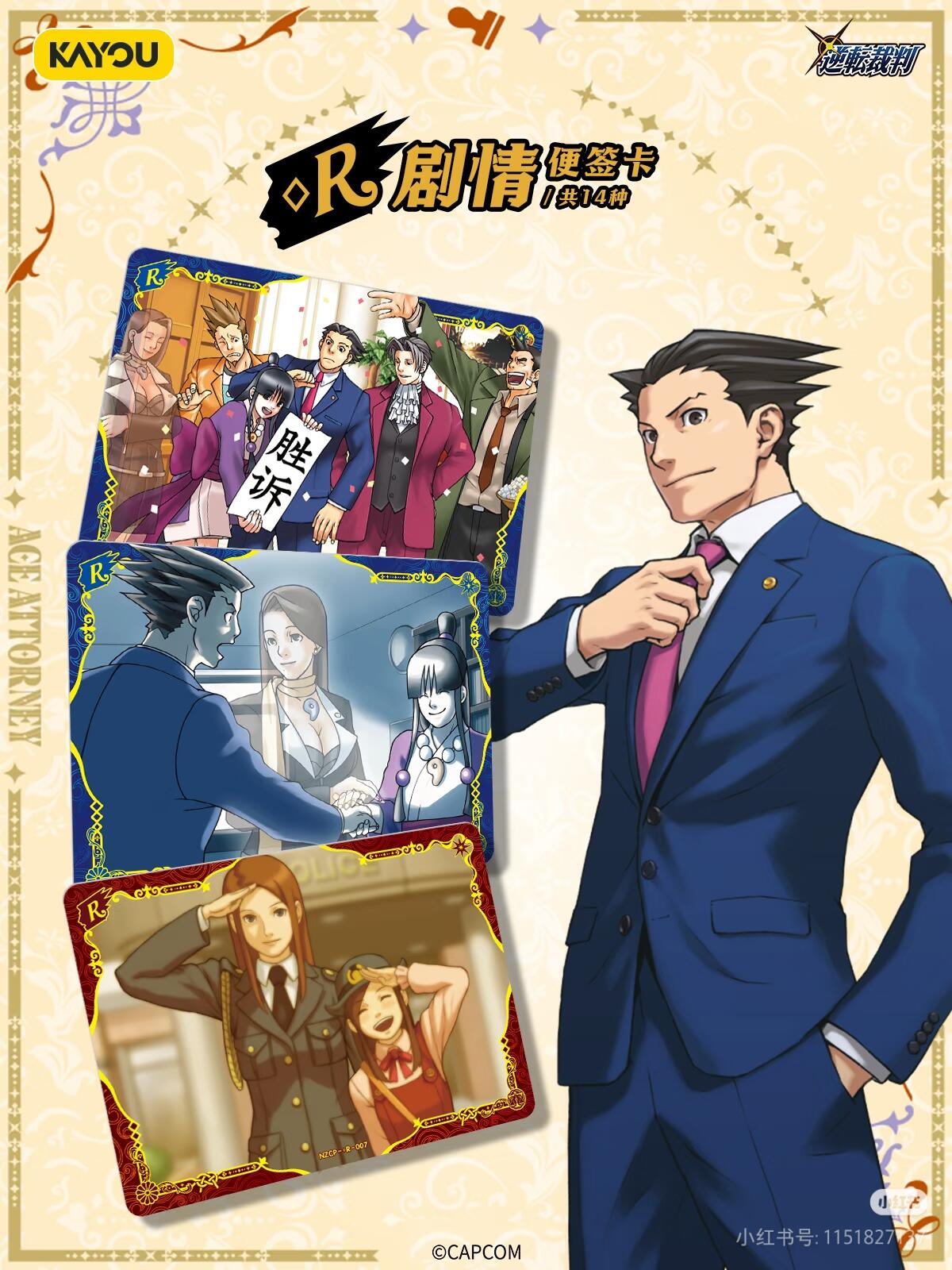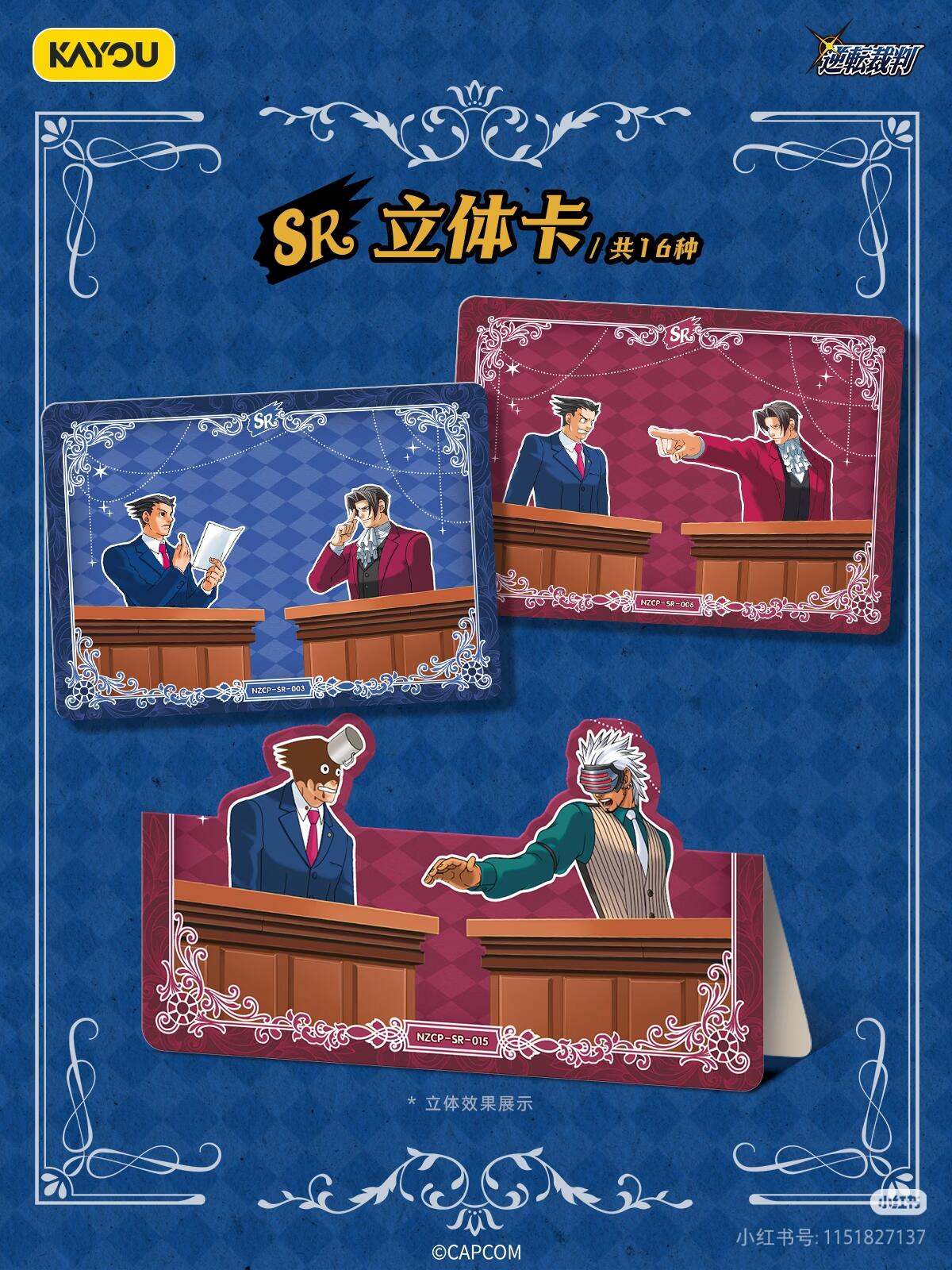逆转裁判正版授权,华丽典藏卡精选包第一弹重磅登场!成步堂龙一、御剑怜侍、绫里真宵等经典角色全员集结,还原法庭名场面与热血剧情,为粉丝献上诚意满满的收藏盛宴。