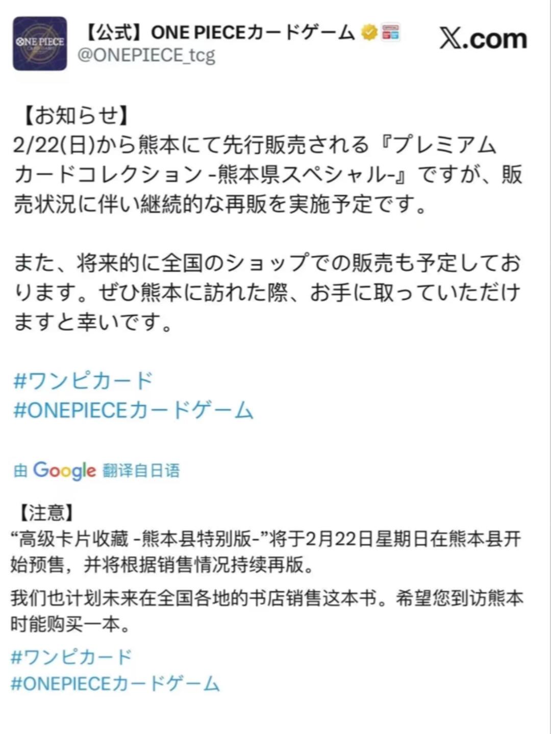 OPCG熊本特别版卡册确认全国发售&持续再版