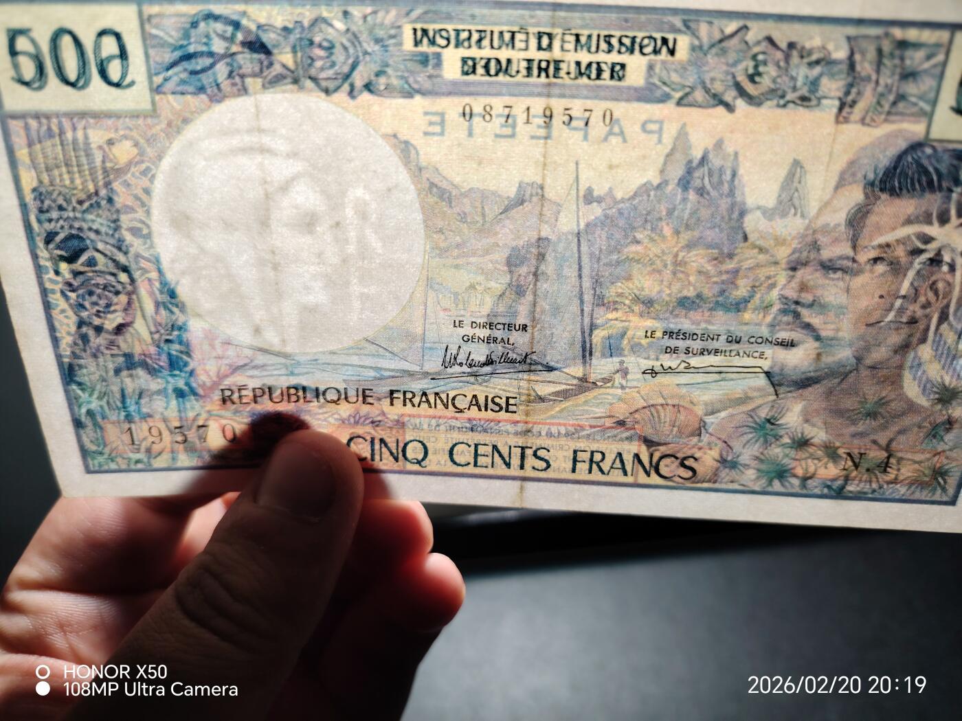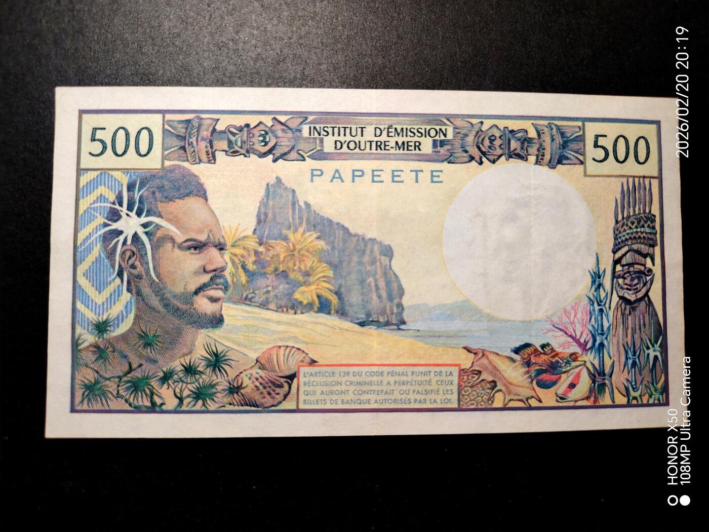 法属太平洋1992年500法朗靓品纸币