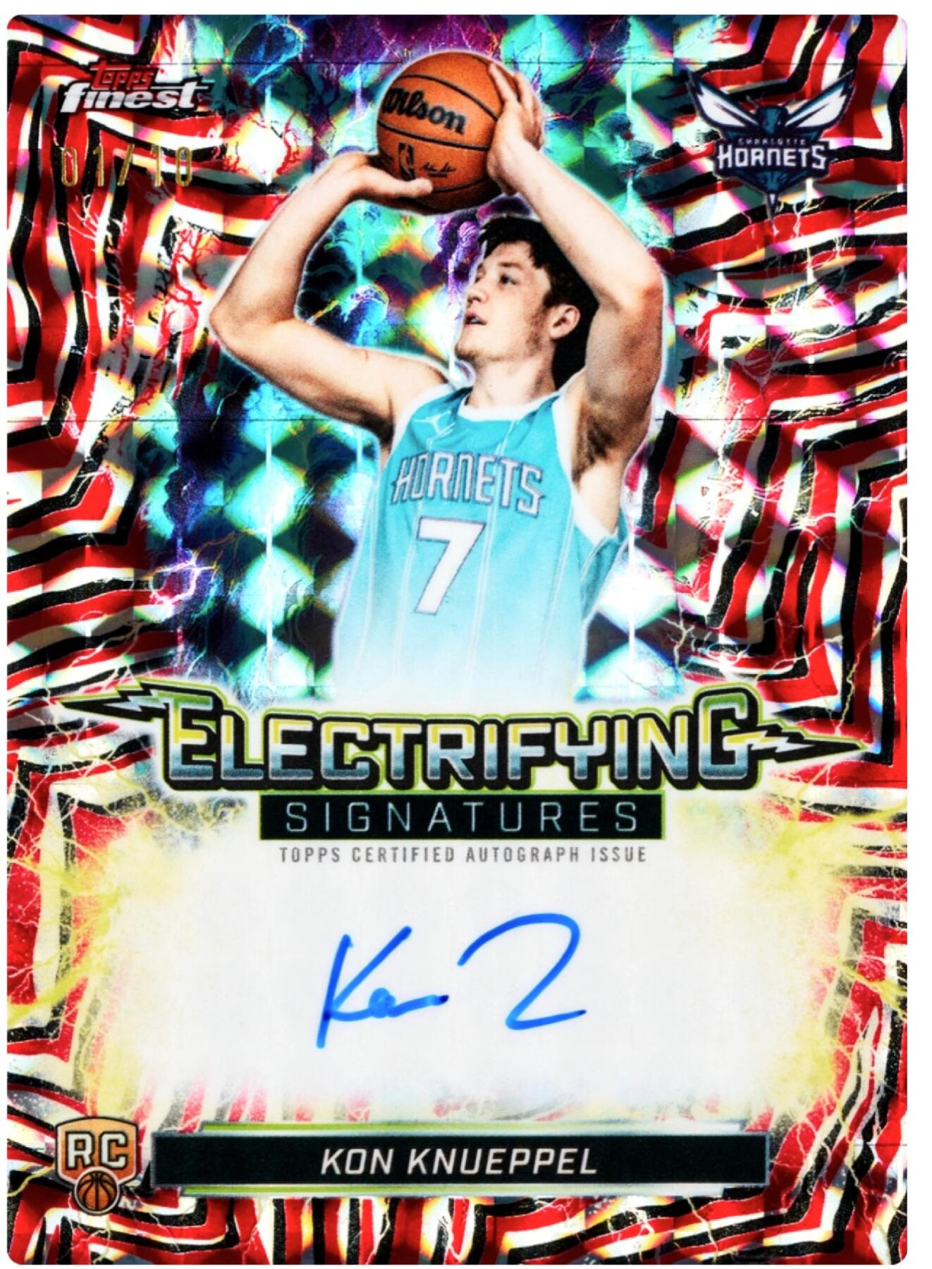 签字卡阵容堪称豪华,每盒Hobby版保底2张亲笔签名卡,为收藏者锁定核心价值。系列涵盖经典Finest签名卡、大师签名卡,更推出电力签、巨幅冲击签等革新款式,新增的底线签以球场底线为背景,简约设计将球员亲笔签名的质感拉满。其中新秀Finest签名卡印有醒目“rookies”字样,篮球网纹理边框的经典款签名卡,更是致敬传统与彰显身份的双重象征。