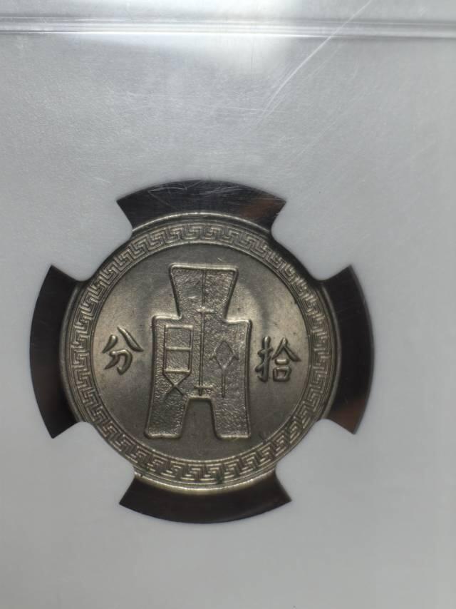 - 面值:拾分(10分);标准直径24mm,战前标准重5.8g(纯镍/高镍),战时改为低镍三元合金(铜55%、锌27%、镍18%),重量降至5.5g;边饰回纹,齿边规整。