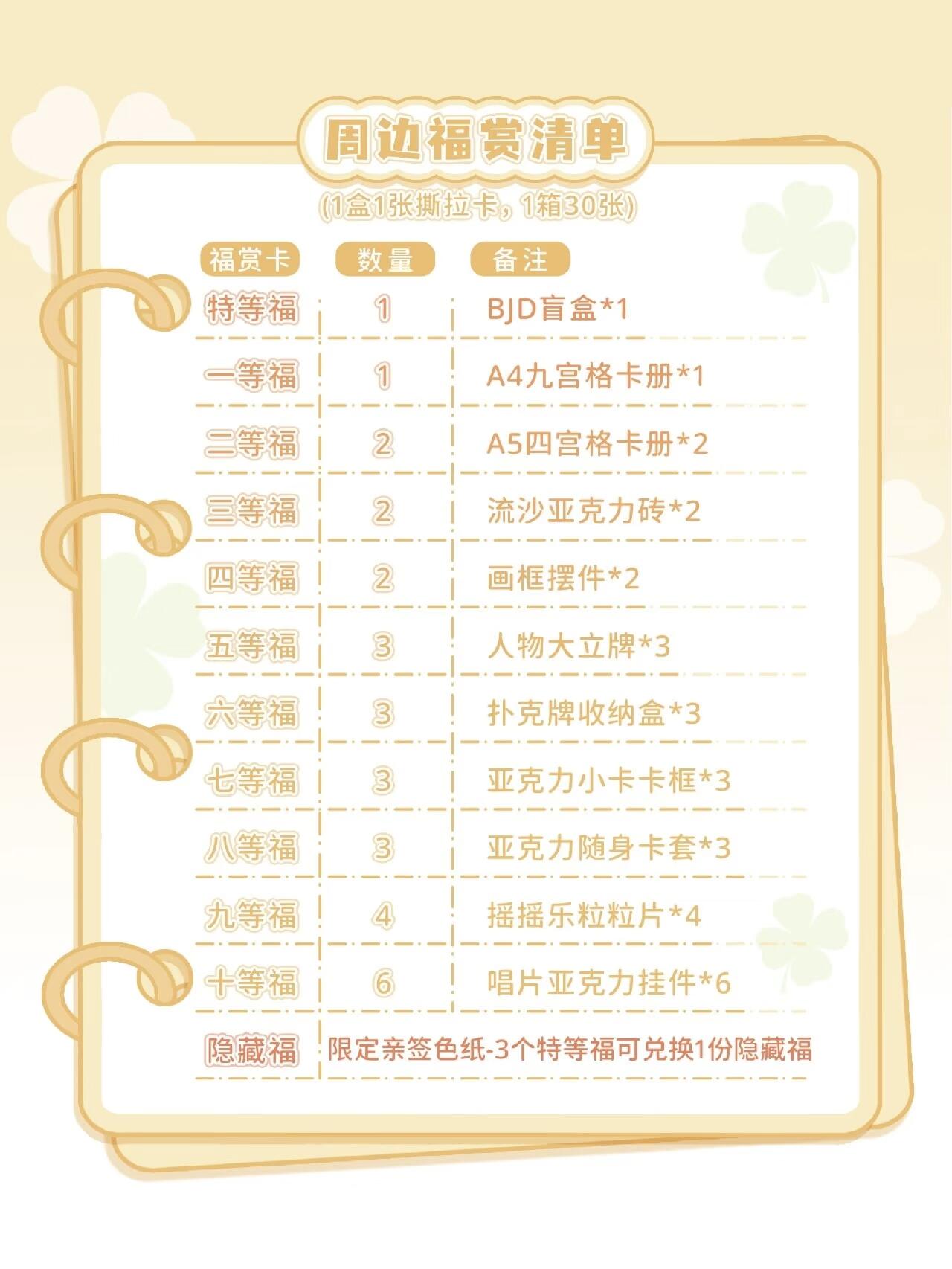 3.超值兑换体系:生日编透卡采用特殊工艺设计,仪式感拉满;周边福赏新增<隐藏福>兑换,限定亲签色纸可定制to签,收藏乐趣与惊喜倍增!