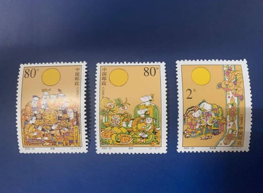 作为集邮爱好者,我比较喜欢的中秋主题邮票就是这套,此为2002年发行的一套3枚 花好圆月邮票。第一枚《团圆》第二枚《赏月》第三枚《月为媒》,图案采用了中国传统的美术画法!难得的精品!