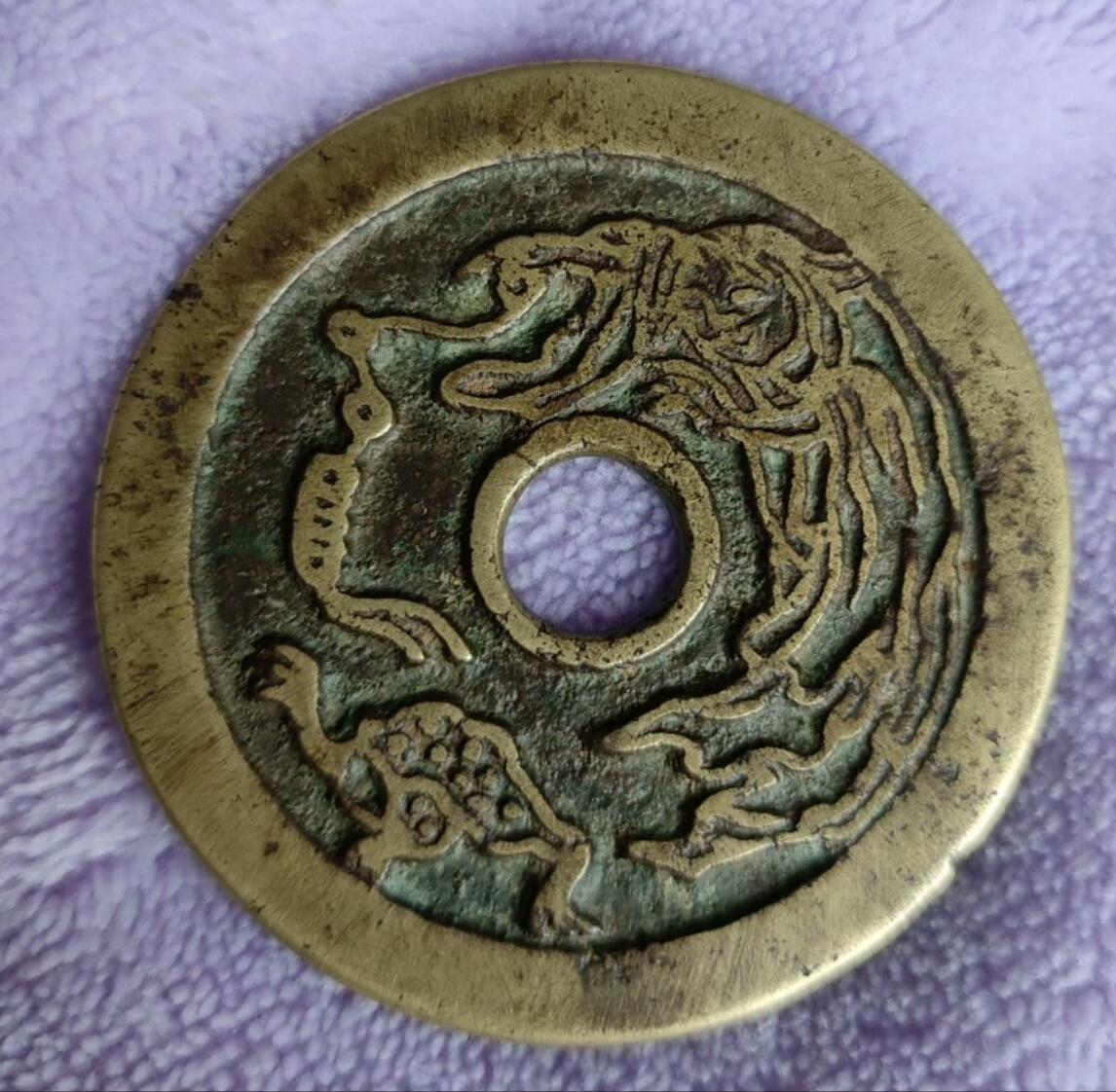 此钱工艺新火气大,铸工粗糙不精,图案缺少神韵,整体工艺状态不符合苏花特征,鉴定为现代仿品。