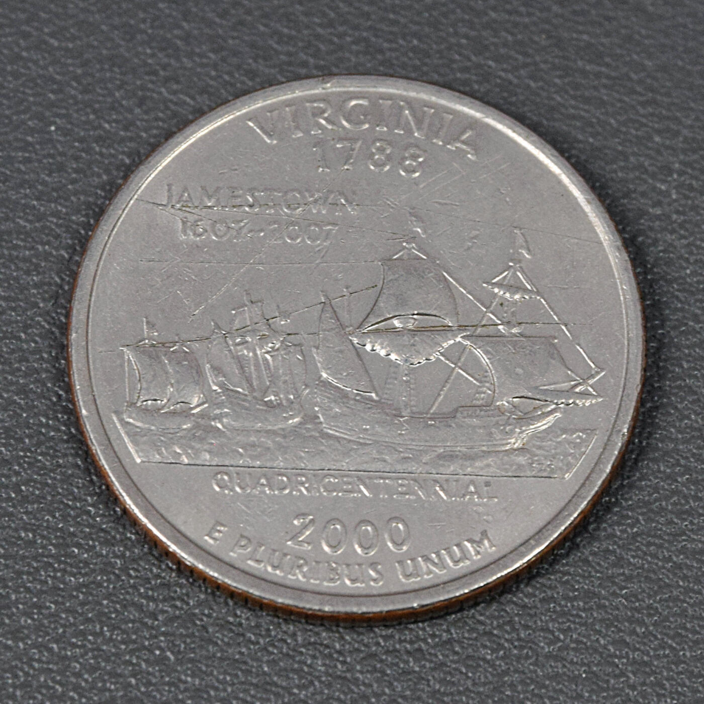 这是一枚美国2000年弗吉尼亚州25美分纪念币,属于美国“50州25美分纪念币”系列。