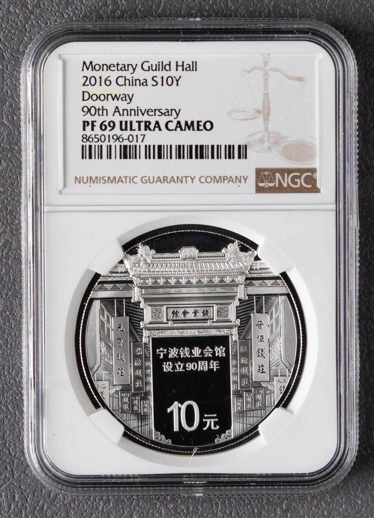 二、基础规格与工艺 - 材质与重量:30克足银999(非1盎司规格),直径40毫米 - 面值:10元 - 工艺:精制(Proof)+ Ultra Cameo(极深浮雕),采用镜面底板+浮雕喷砂,清晰还原钱业会馆大门的建筑细节 - 题材背景:背面为宁波钱业会馆大门及内景,正面为国徽,是首个以国家重点文保单位(宁波钱业会馆)为单一题材的贵金属币