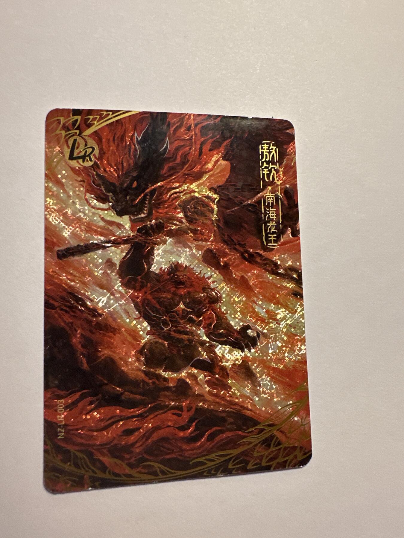 •角色身份:款钦是四海龙王中的南海龙王,在《哪吒之魔童闹海》设定中为「武力担当」,性格暴躁、力大无穷,全身熔岩红配色极具威慑力,是核心反派阵营角色。 • 稀有度定位:LR (Legendary Rare)为高稀有度,是斗天包/EX版的核心卡位之一,属于「四海龙王」主题限定卡,出卡率 远低于 SR/UR,与其他龙王LR卡共同构成高人气收藏套。