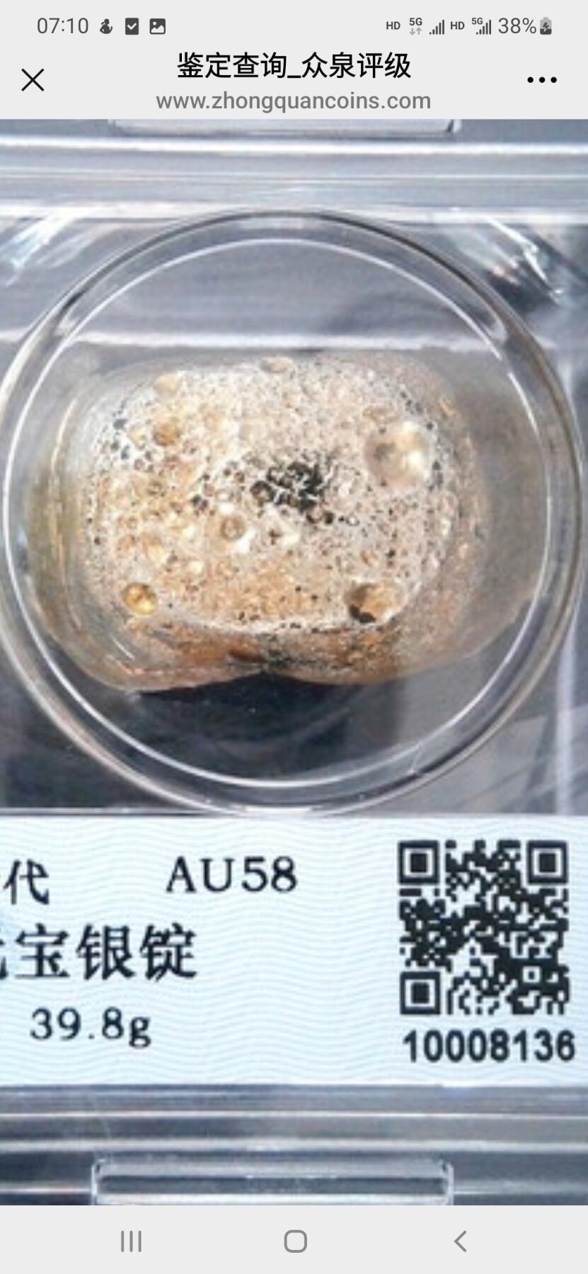 银泉汇~清代山西“如”字一两吉语银锭 重39.8g,众泉评级AU58,开门真品。 金色包浆莹润通透,金珠挂底,蜂窝规整,品相顶级。 此锭源自山西,为晋商银炉开炉吉语锭,不参与流通,专作镇炉祈福之用,寓意如意如愿、诚信经商。曾助乡邻赈灾济困,藏晋商仁义之风,存世稀少,收藏重器小精品。