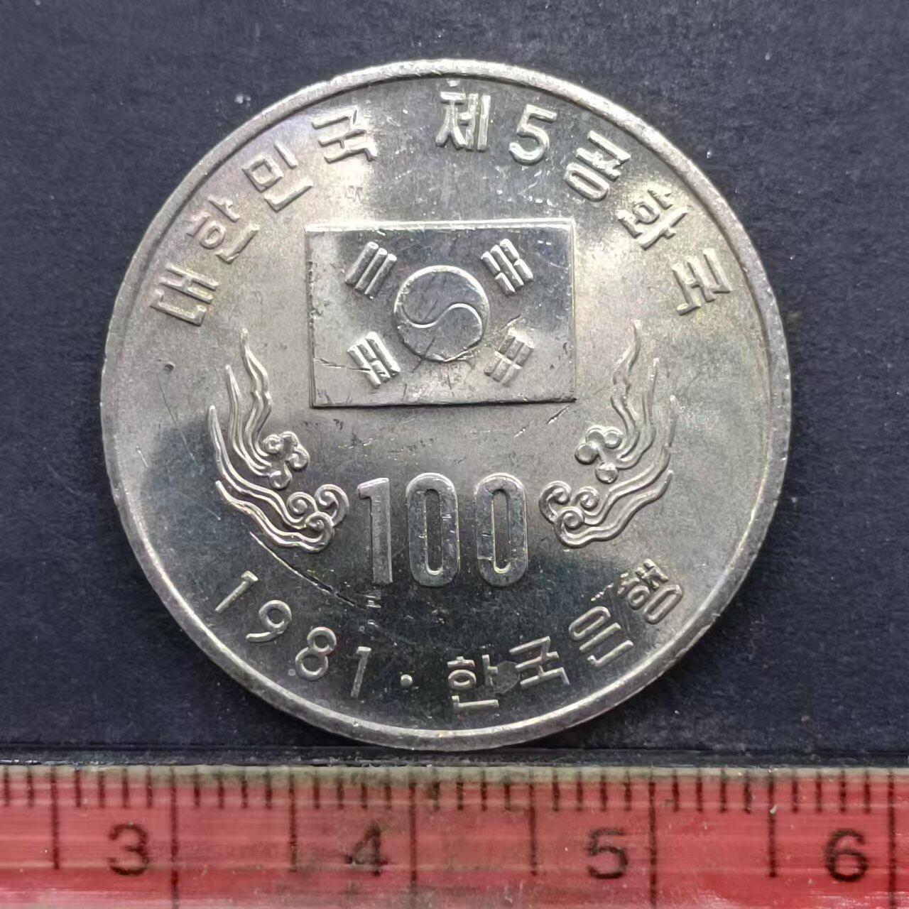 这是一枚韩国1981年发行的100韩元第五共和国成立一周年纪念币,以下是详细介绍: