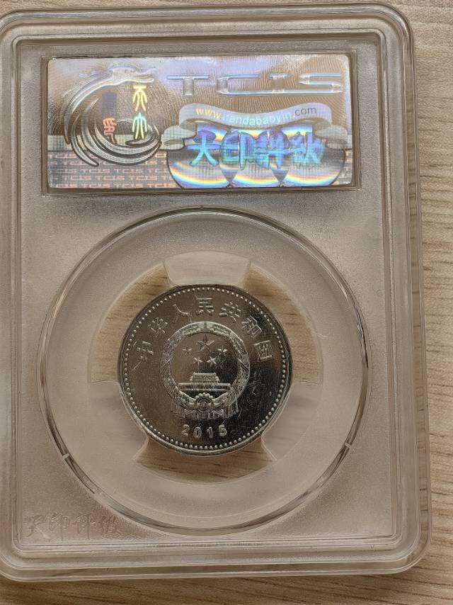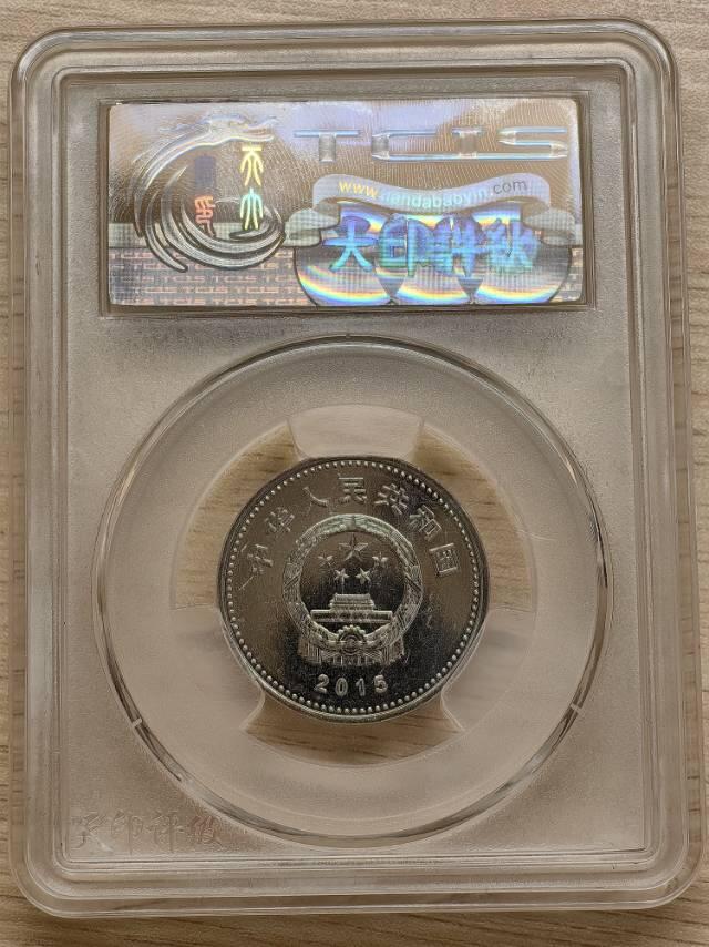 - 正面:中华人民共和国国徽,上方刊国名,下方刊年号“2015”。 - 背面:以长城为背景的“V”字胜利符号、数字“70”与年份“1945-2015”,上方环绕五只和平鸽,象征和平与胜利;内缘刊主题文字,右下方刊面额“1元”。 - 发行意义:2015年是中国人民抗日战争暨世界反法西斯战争胜利70周年,该币为铭记历史、缅怀先烈而发行,与现行人民币等值流通。
