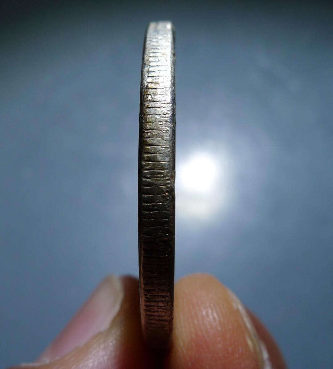 币没问题 包浆大概率人工“干预”过 过着进行过局部清理 不过研究这个意义不大 看边齿与磨损程度加之币边的磕碰 此枚摩根品相本就不佳