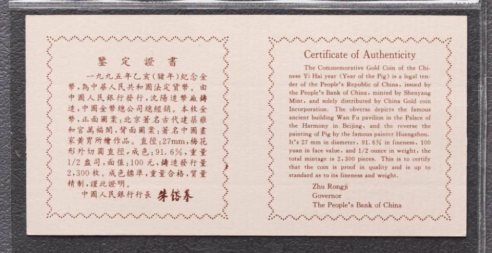 - 发行年份:1995年(乙亥猪年)