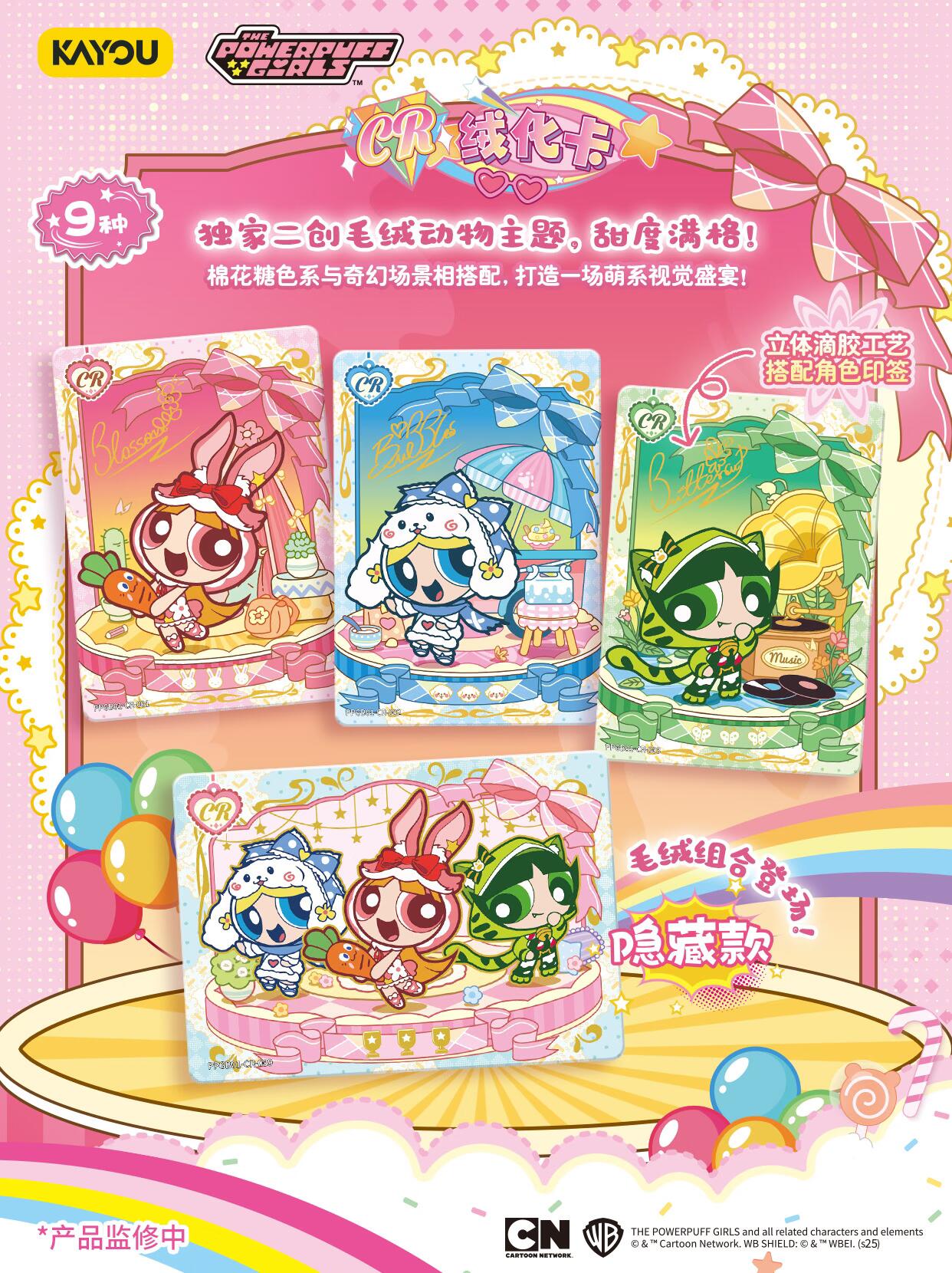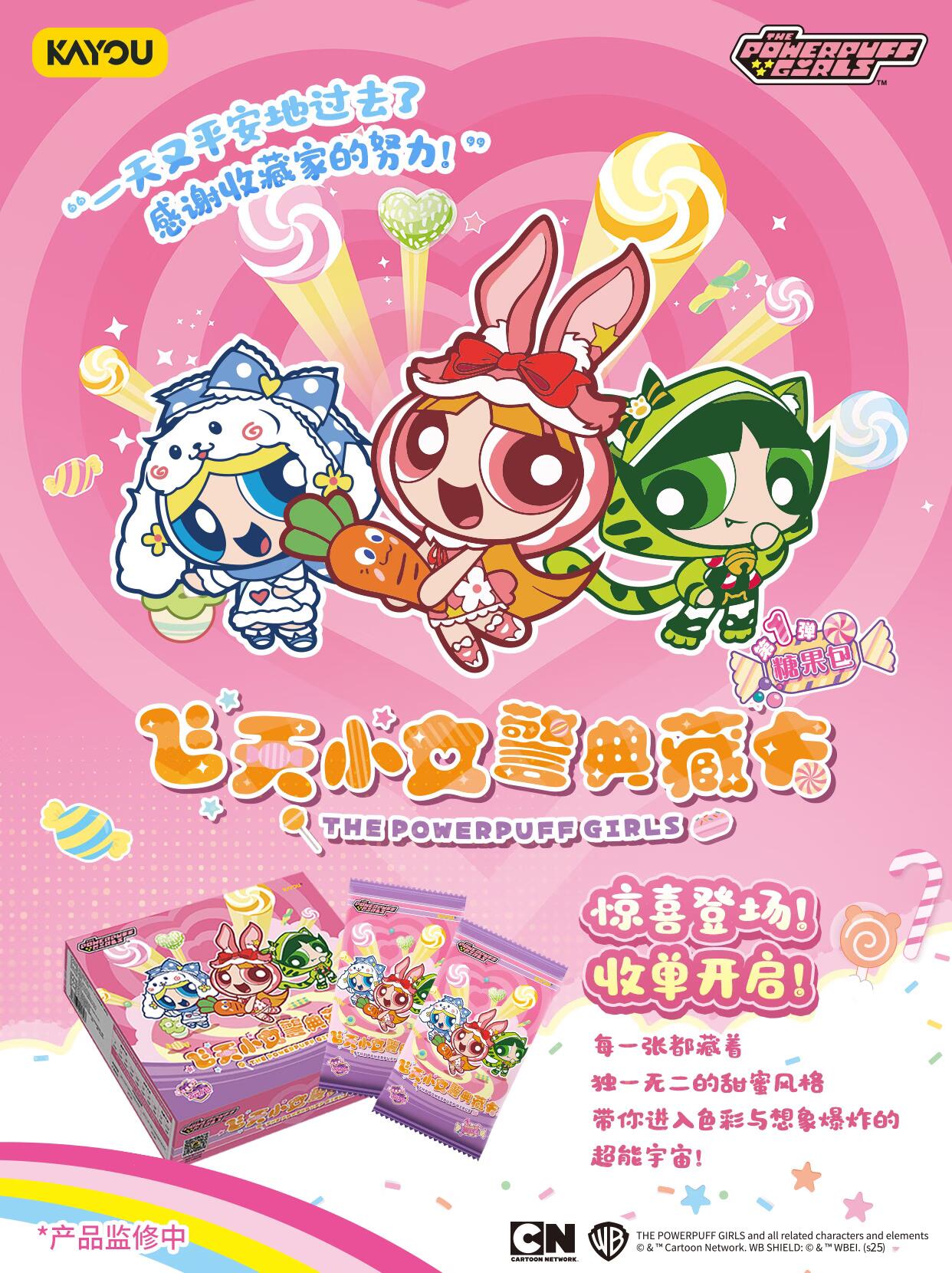 卡游飞天小女警典藏卡-糖果包 🍬卡游【THE POWERPUFF GIRLS-飞天小女警典藏卡-糖果包】3月11日-13日收单开启!🍬 📦预计发货时间3月16日 🎉“甜蜜碰撞”的糖果狂欢派对,用一场“甜蜜风暴”唤醒所有感官 🍮独家二创毛绒动物主题甜度满格登场,更有特别隐藏款小女警毛绒绒组合! 💪“一天又平安地过去了,感谢收藏家的努力!”