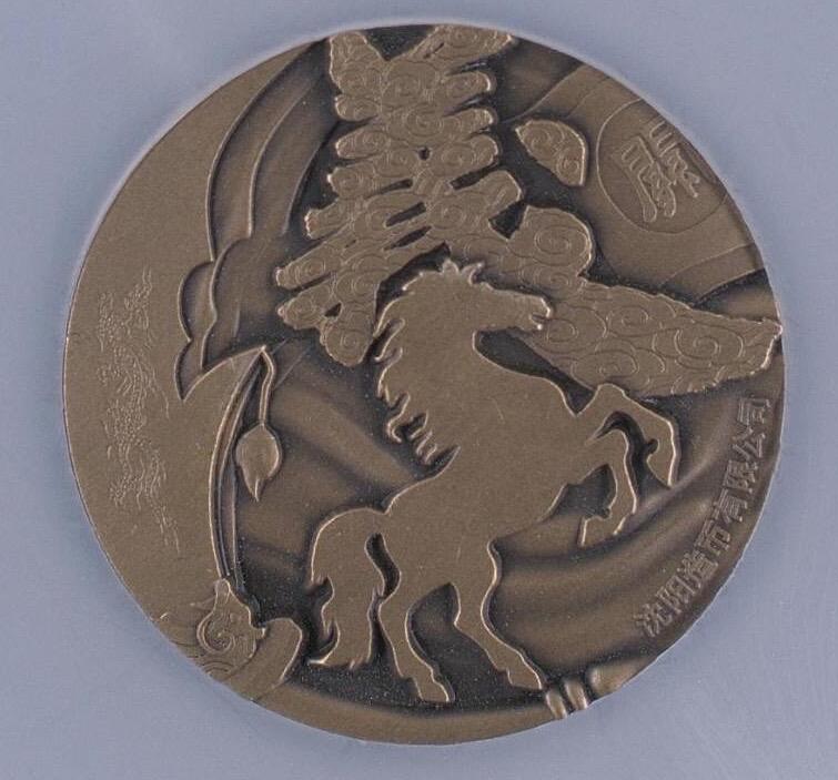 武圣关羽铜章(2015年版),由沈阳造币有限公司铸造,直径45mm,重80g,黄铜材质高浮雕工艺。 正面为关羽秉烛夜读形象,背面为“义”字与奔马图案。